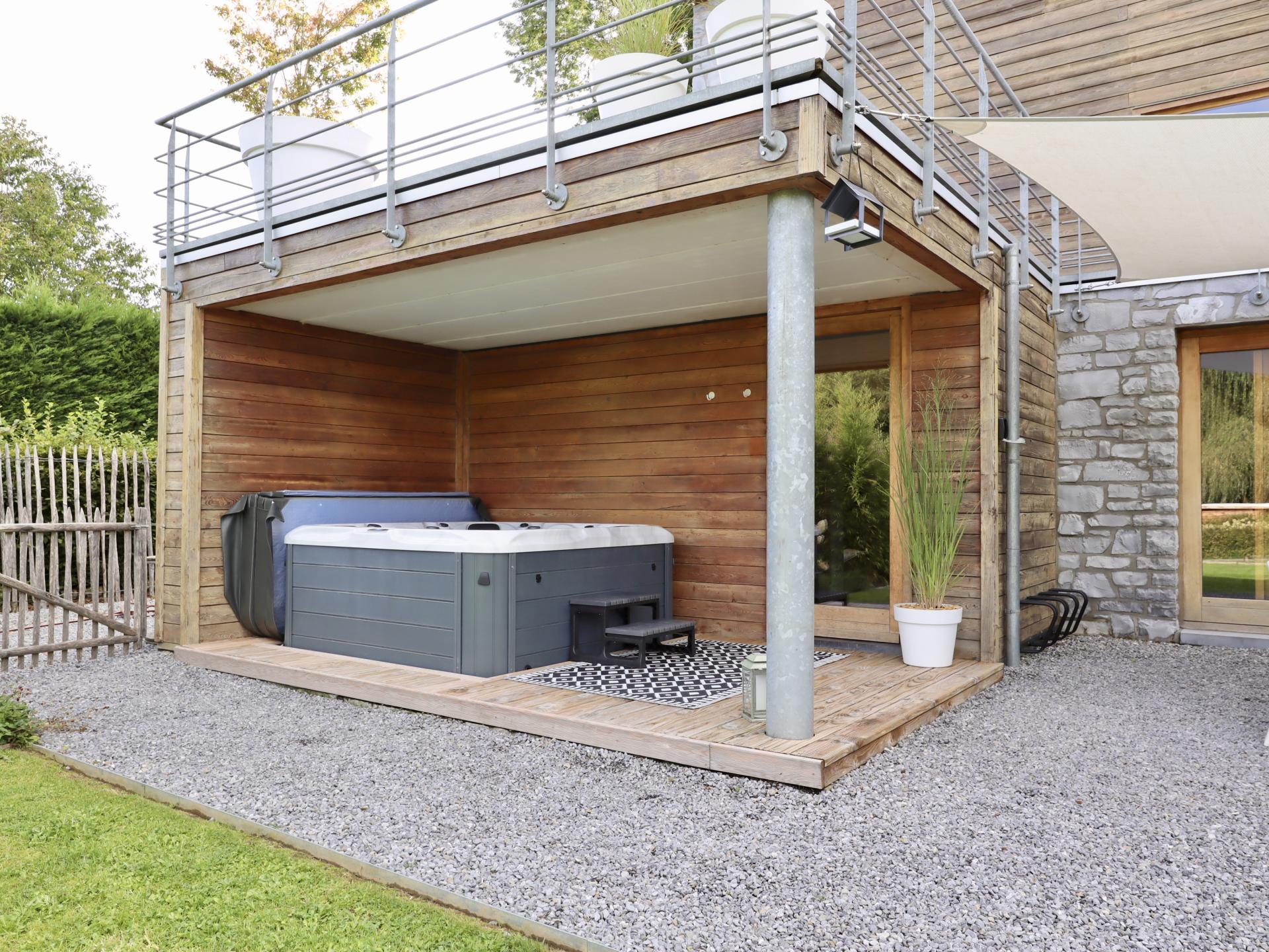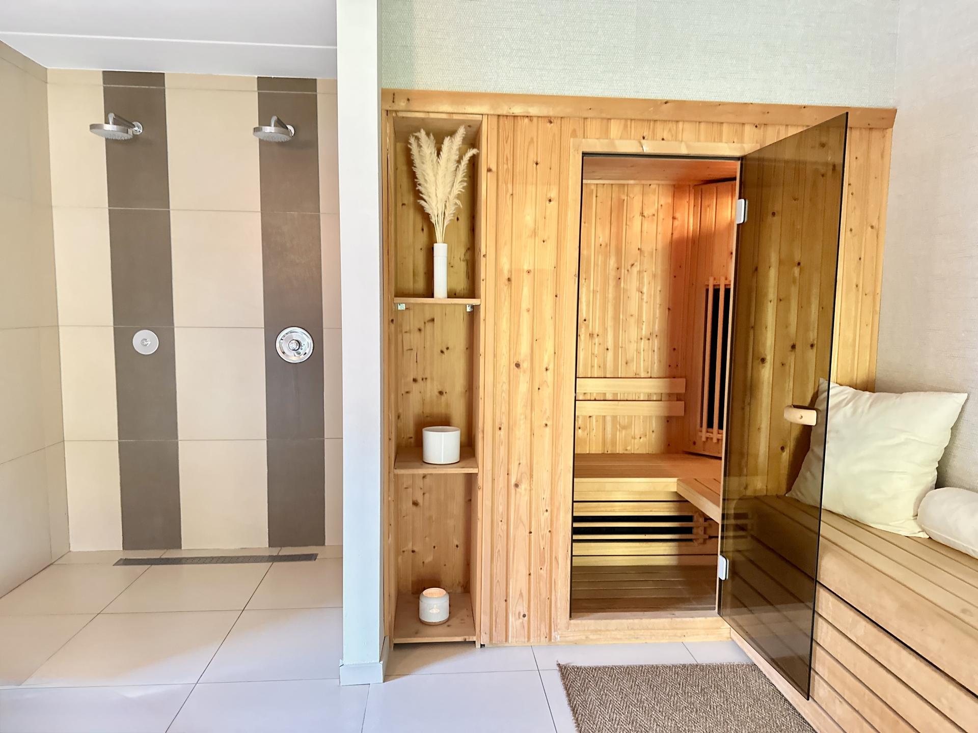Sie können eine schöne Terrasse und den Garten genießen, aber vor allem können Sie sich im Außenwhirlpool (überdacht) oder im Wellnessraum mit der klassischen Sauna oder der Infrarotsauna entspannen.