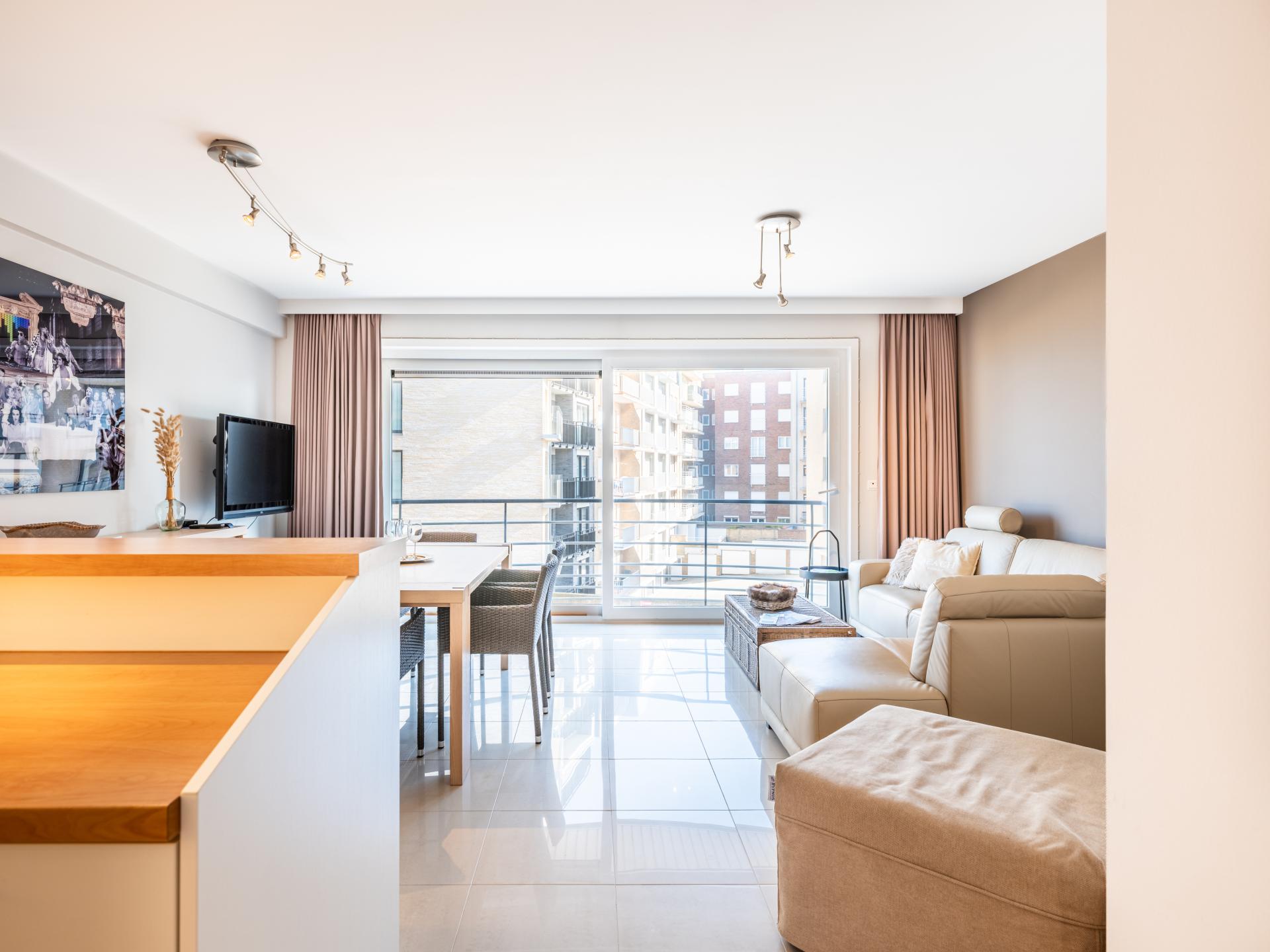 Moderne 2-Schlafzimmer-Wohnung mit seitlichem Meerblick. Diese Wohnung im 2. Stock ist sehr gut gepflegt und mit hochwertigen Möbeln ausgestattet. Offene Küche mit allen Annehmlichkeiten, Bad und ein Schlafzimmer mit Dusche. Sie liegt in der Nähe des Strandes. Sowohl auf der Vorderseite des Wohnzimmers gibt es einen Balkon als auch auf der Rückseite des Gebäudes die beiden Schlafzimmer haben jeweils einen sonnigen Balkon