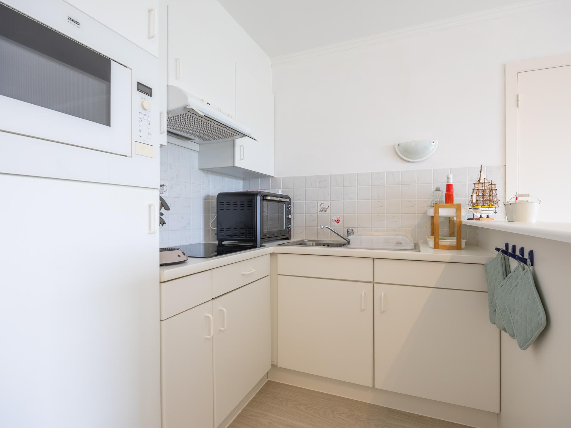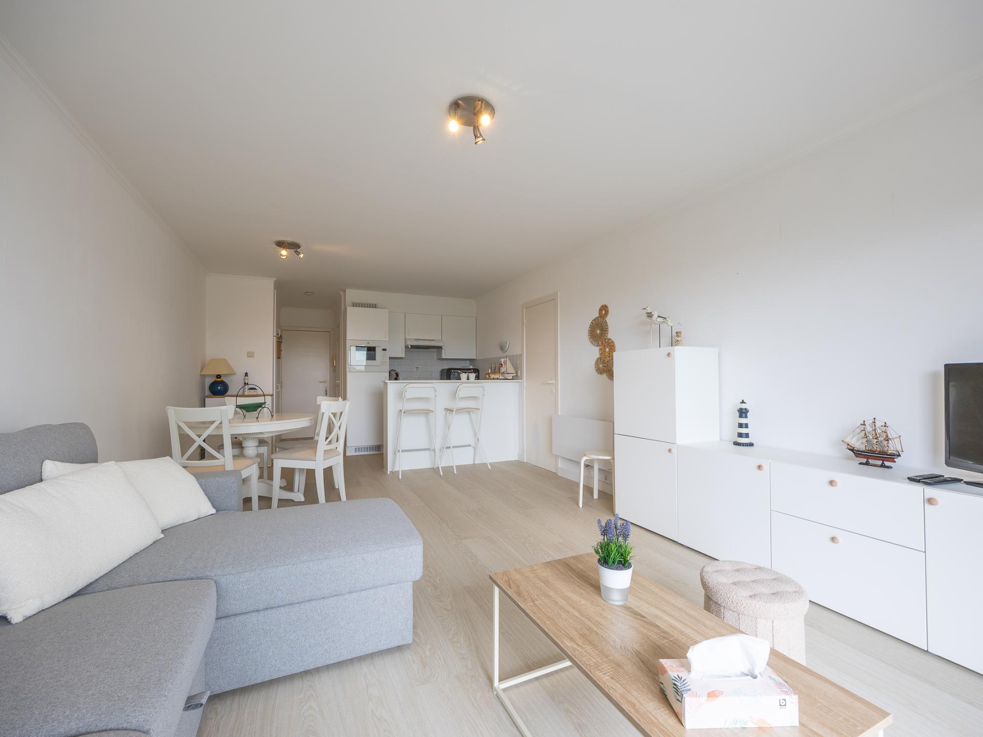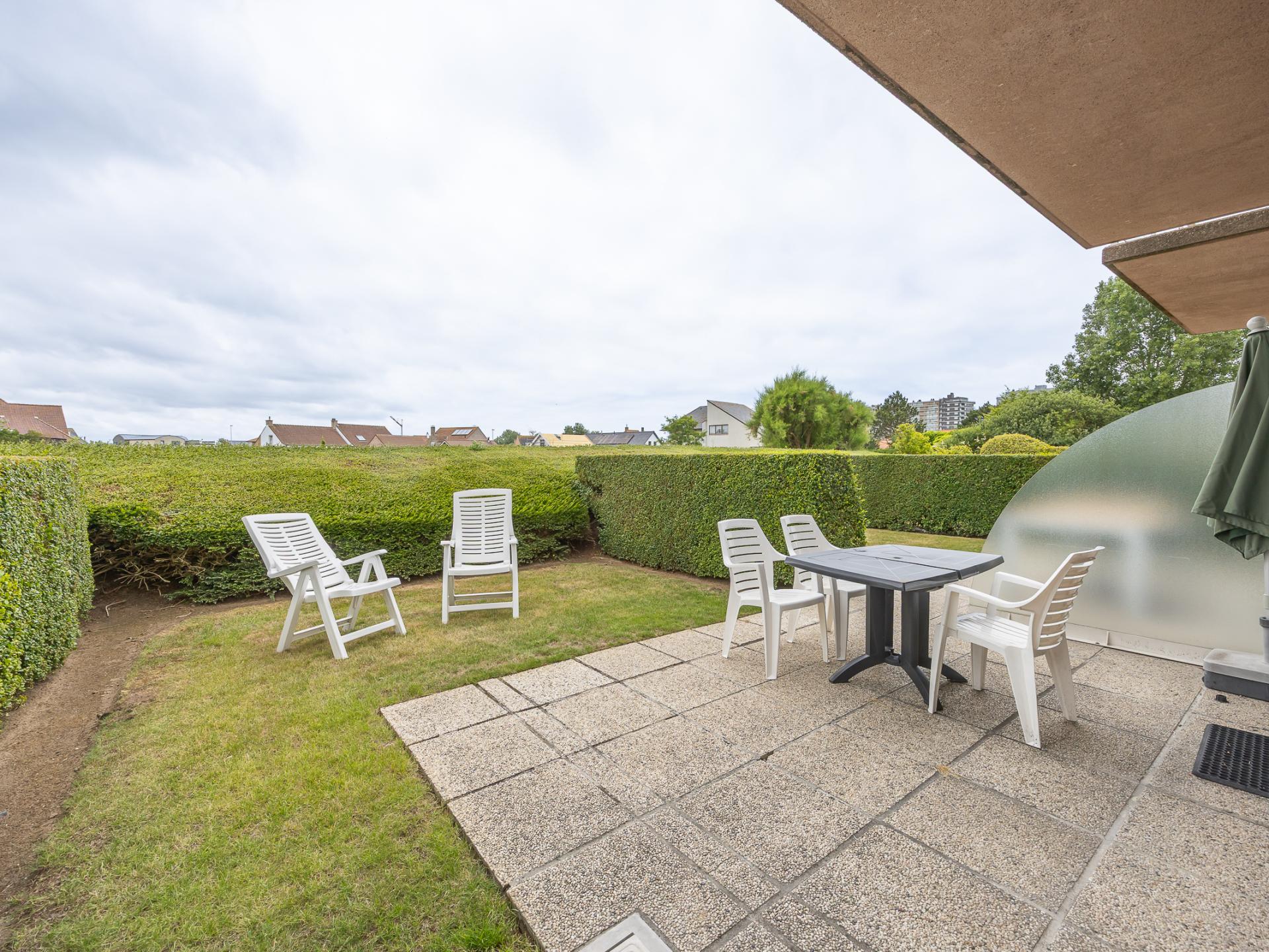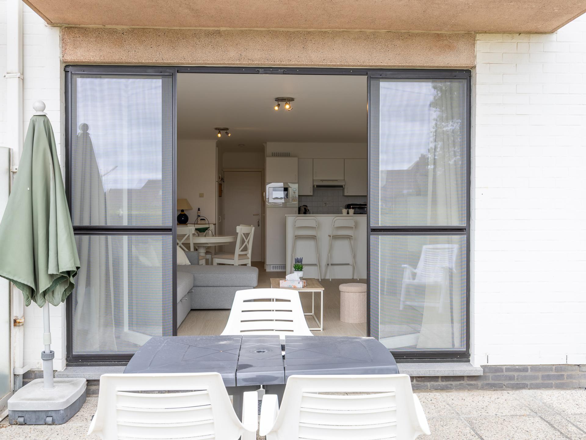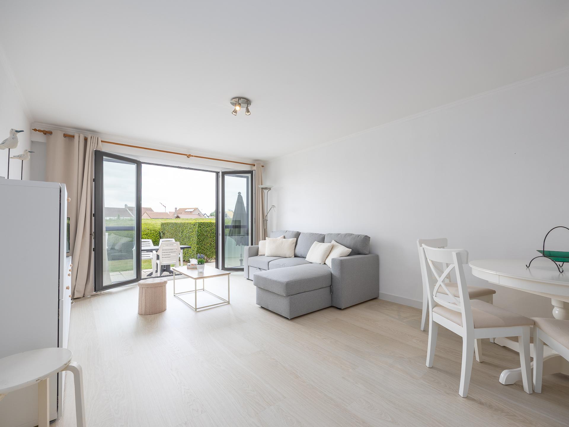 Charmantes Erdgeschoss-Apartment mit 1 Schlafzimmer (Doppelbett) und Wohnzimmer mit Schlafsofa für 2 Personen. Direkter Zugang zu einer großen Terrasse mit Garten zum Sonnenbaden. Offene, voll ausgestattete Küche und Bad mit Badewanne und WC. Ruhig gelegen in einem grünen Ferienpark mit Außenpool (geöffnet Ende Mai–15. September, 7:30–19:00). Ideal für einen entspannten Urlaub.
