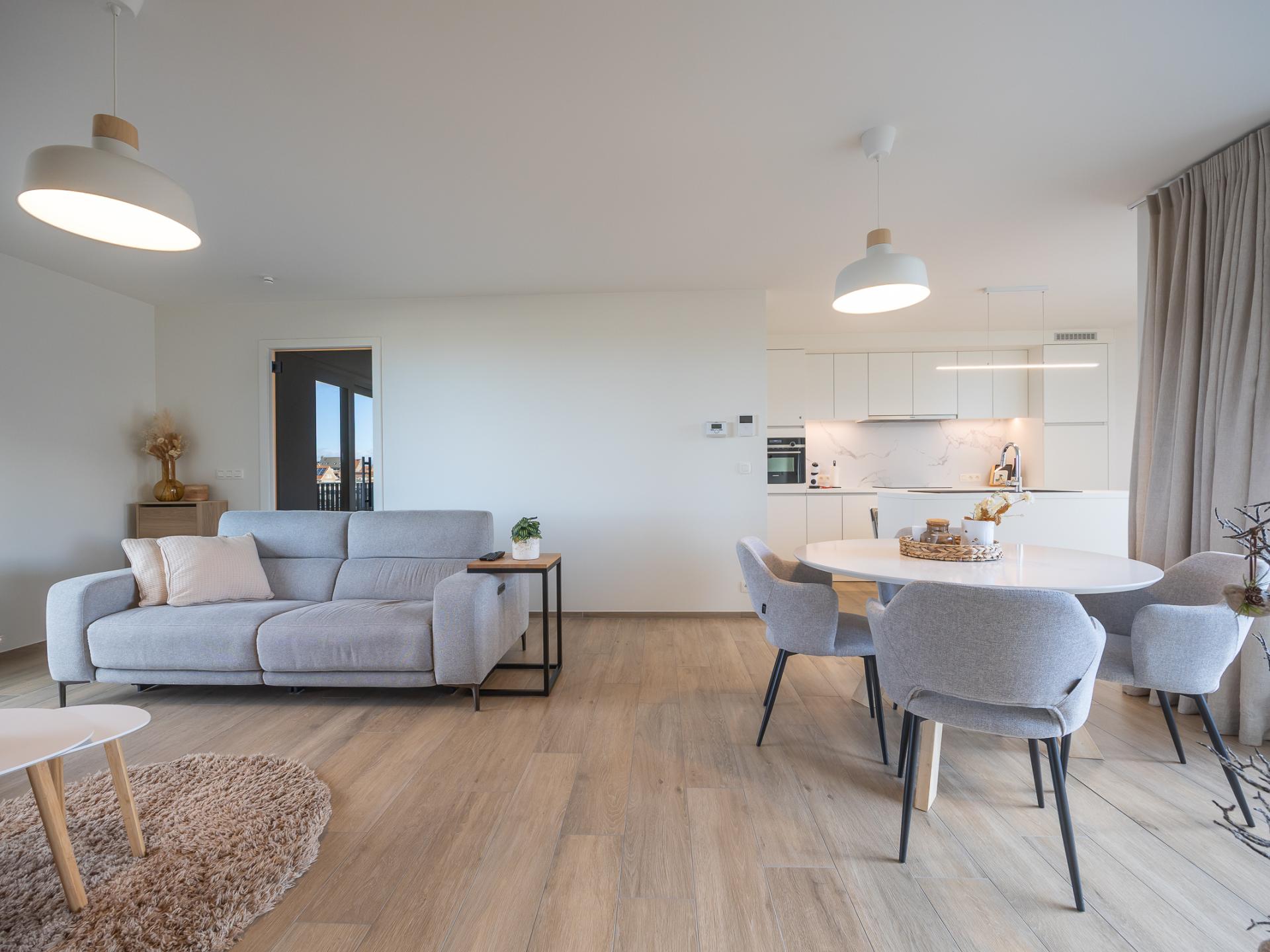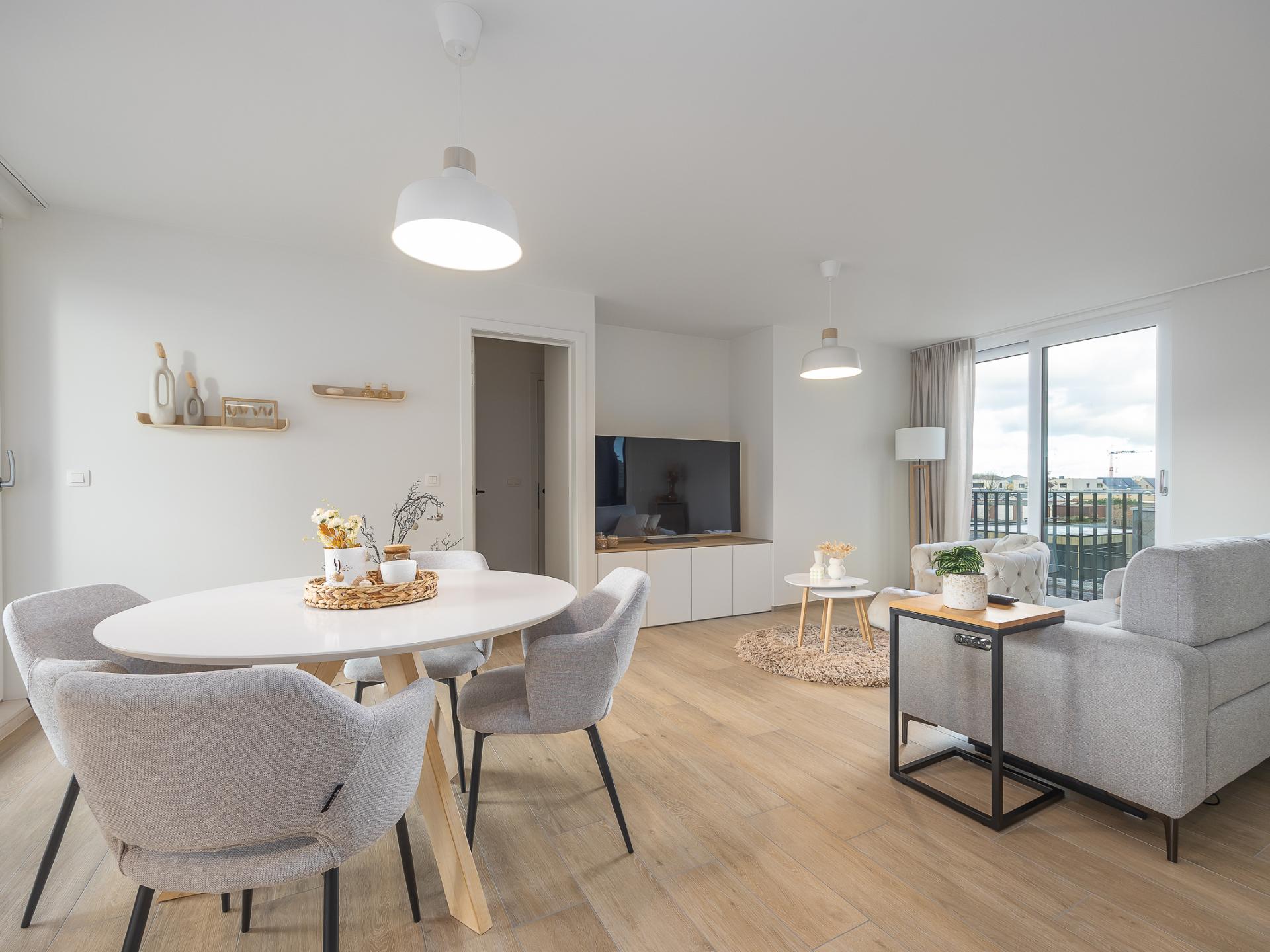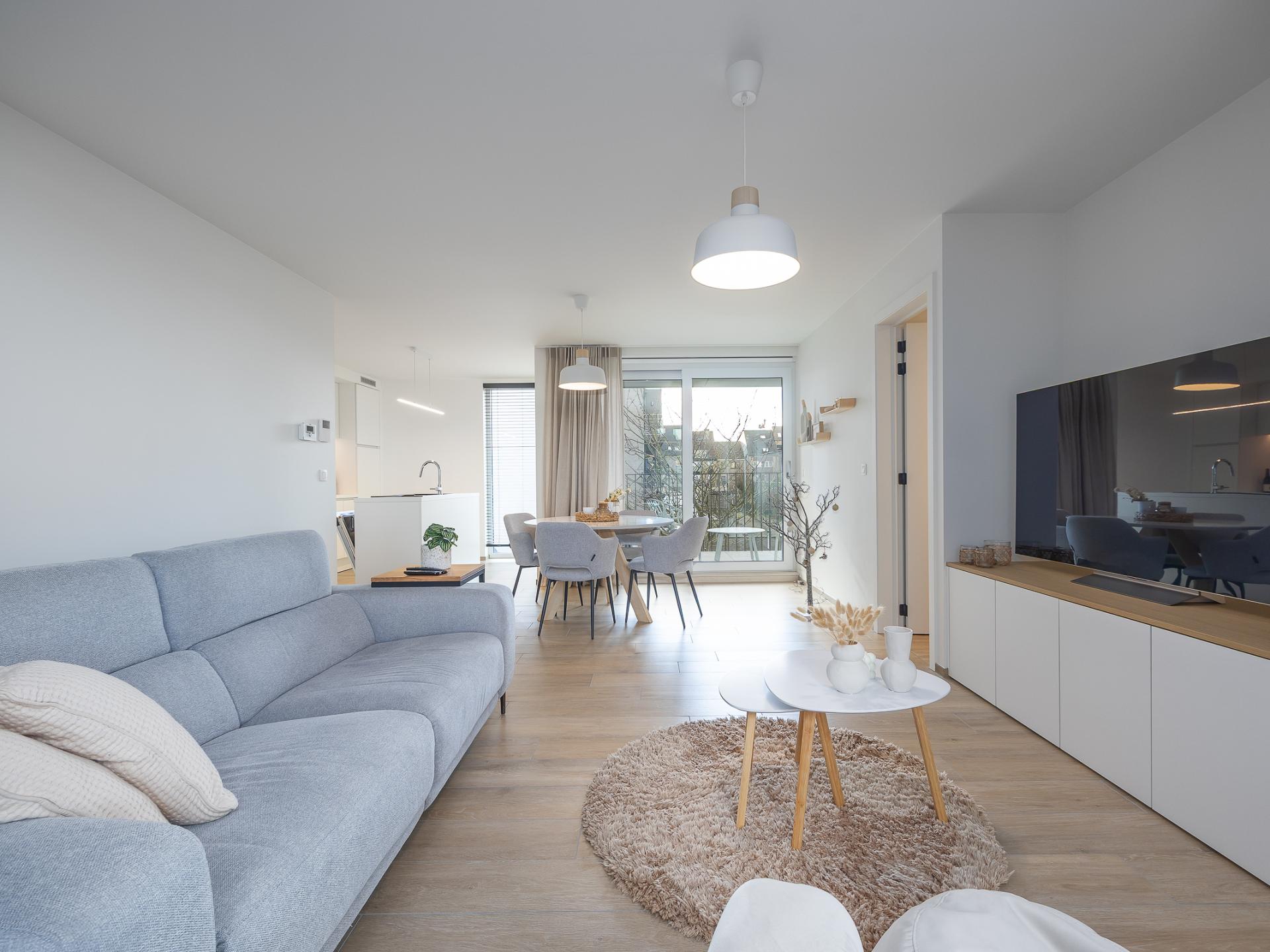 Modernes Neubauapartment mit 2 Schlafzimmern, sonniger Terrasse und allem modernen Komfort. Ruhig gelegen nahe Geschäften, Straßenbahn und Normandpark, nur 600 m vom Strand und der Promenade entfernt. Ideal für Familien oder Freunde.