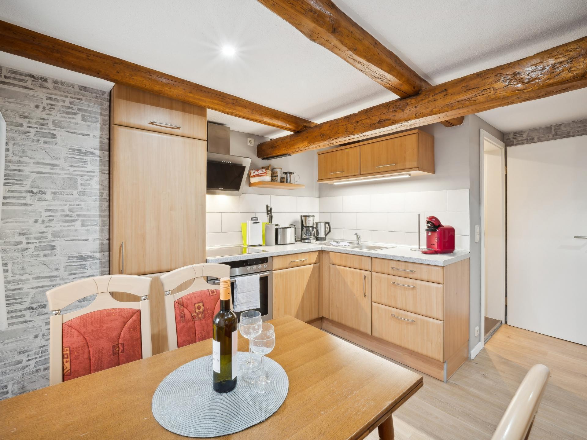 In einem Fachwerkhaus am Rand von Timmenrode erwartet Sie diese gemütliche Ferienwohnung in der ersten Etage. Helle Räume, warme Materialien und ein liebevoll gestalteter Wohnbereich schaffen eine angenehme Atmosphäre für ruhige Tage im Harz. Die Küche bietet Platz für gemeinsame Mahlzeiten, und auf der überdachten Terrasse genießen Sie die frische Luft und den Blick in den Garten. Die Umgebung lädt zu entspannten Momenten und kleinen Erkundungen direkt ab Haus ein.