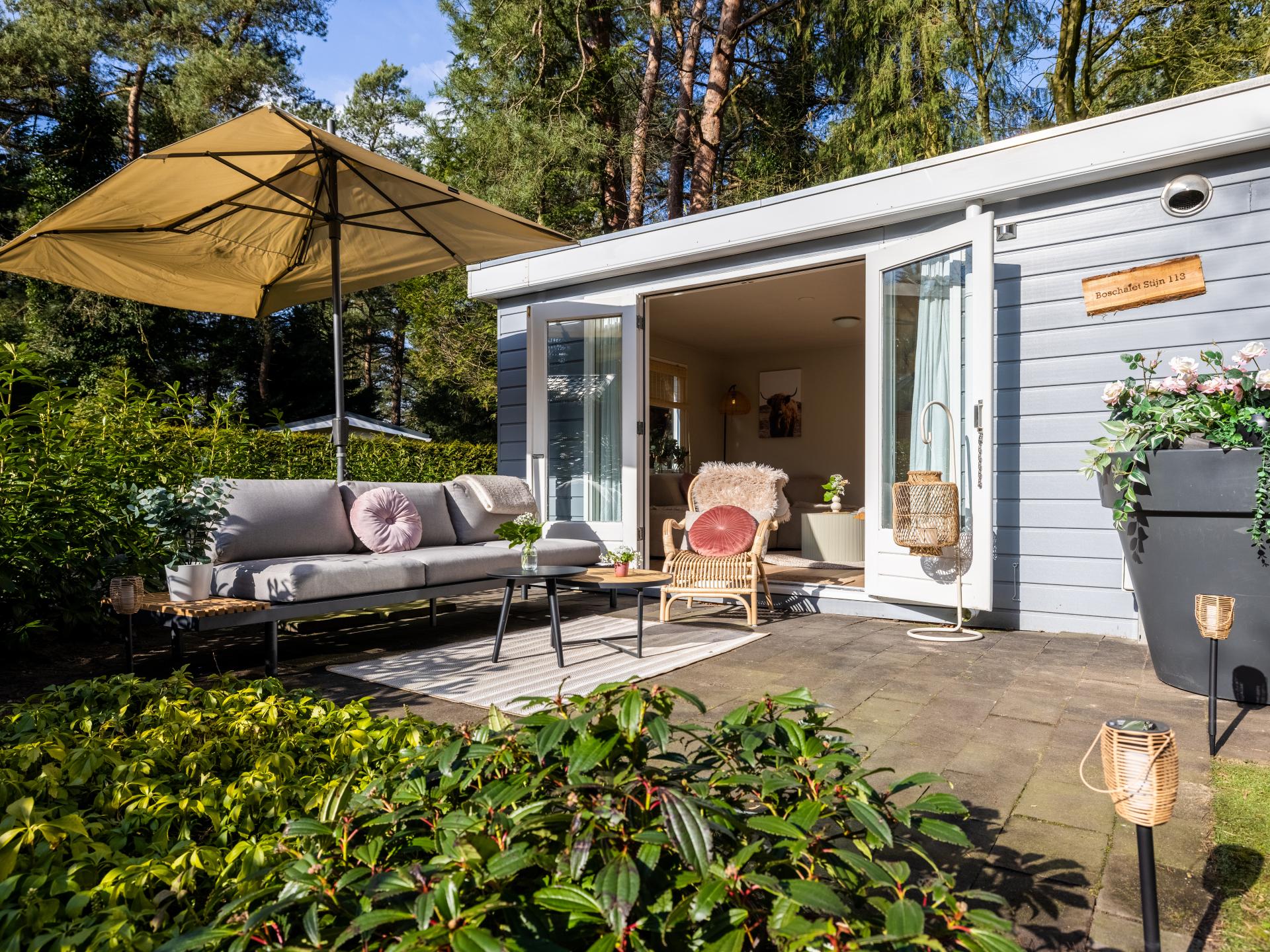 Das Boschalet Stijn ist ein gemütliches Chalet für bis zu 4 Personen, mitten im Grünen. Mit 40 m² ist es kompakt, aber liebevoll und komfortabel eingerichtet. Vom hellen Wohnbereich gelangst du direkt in den ruhigen Garten mit schöner Terrasse – perfekt zum Entspannen. Es gibt zwei kleine Schlafzimmer: eines mit Etagenbett und eines mit zwei Betten nebeneinander. Die Betten sind bezogen und Handtücher liegen bereit.