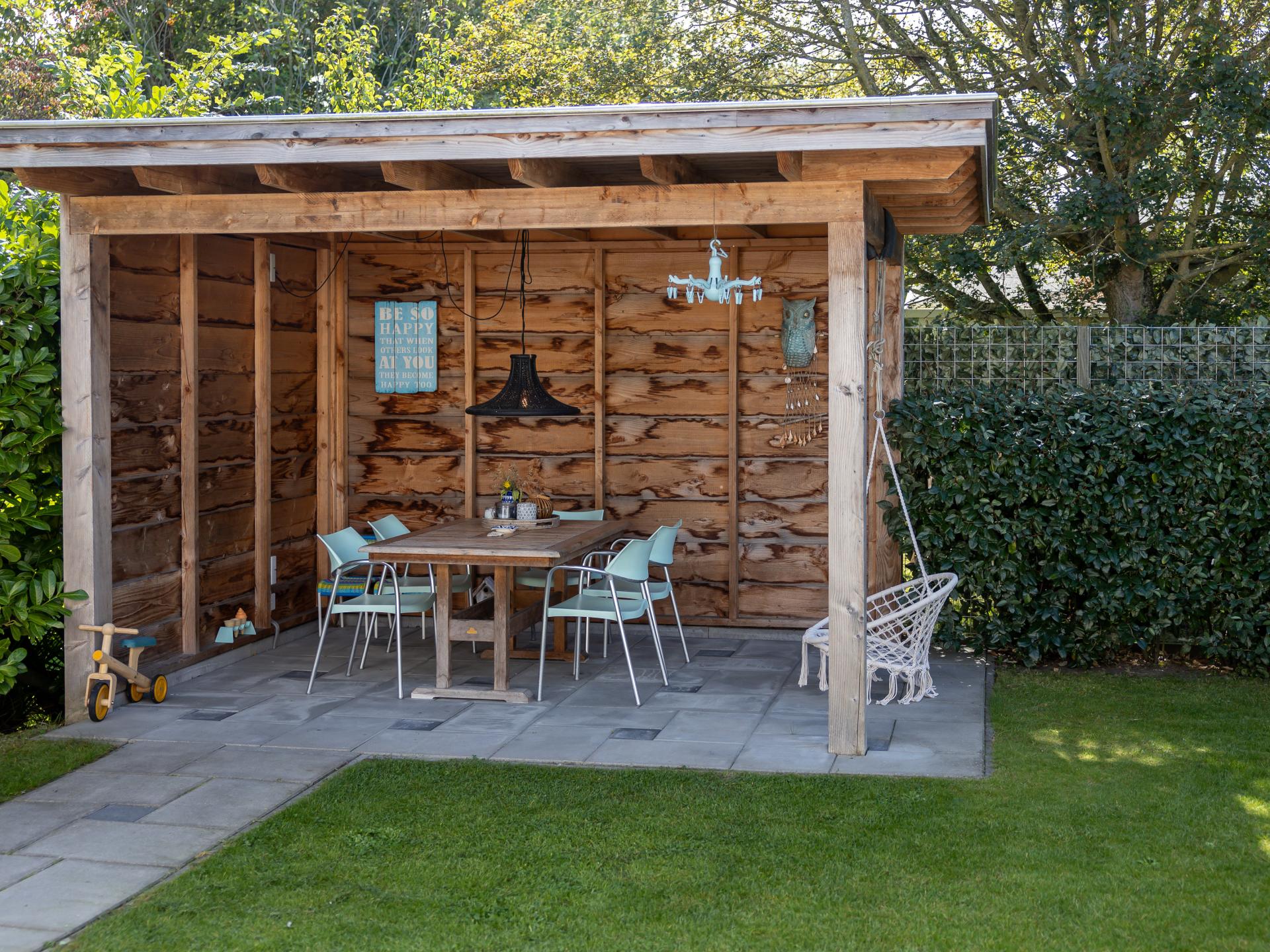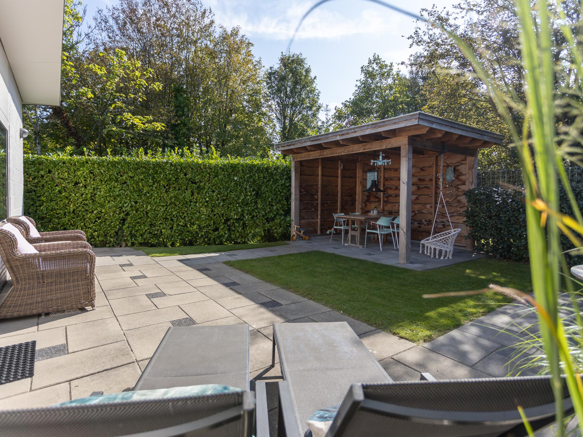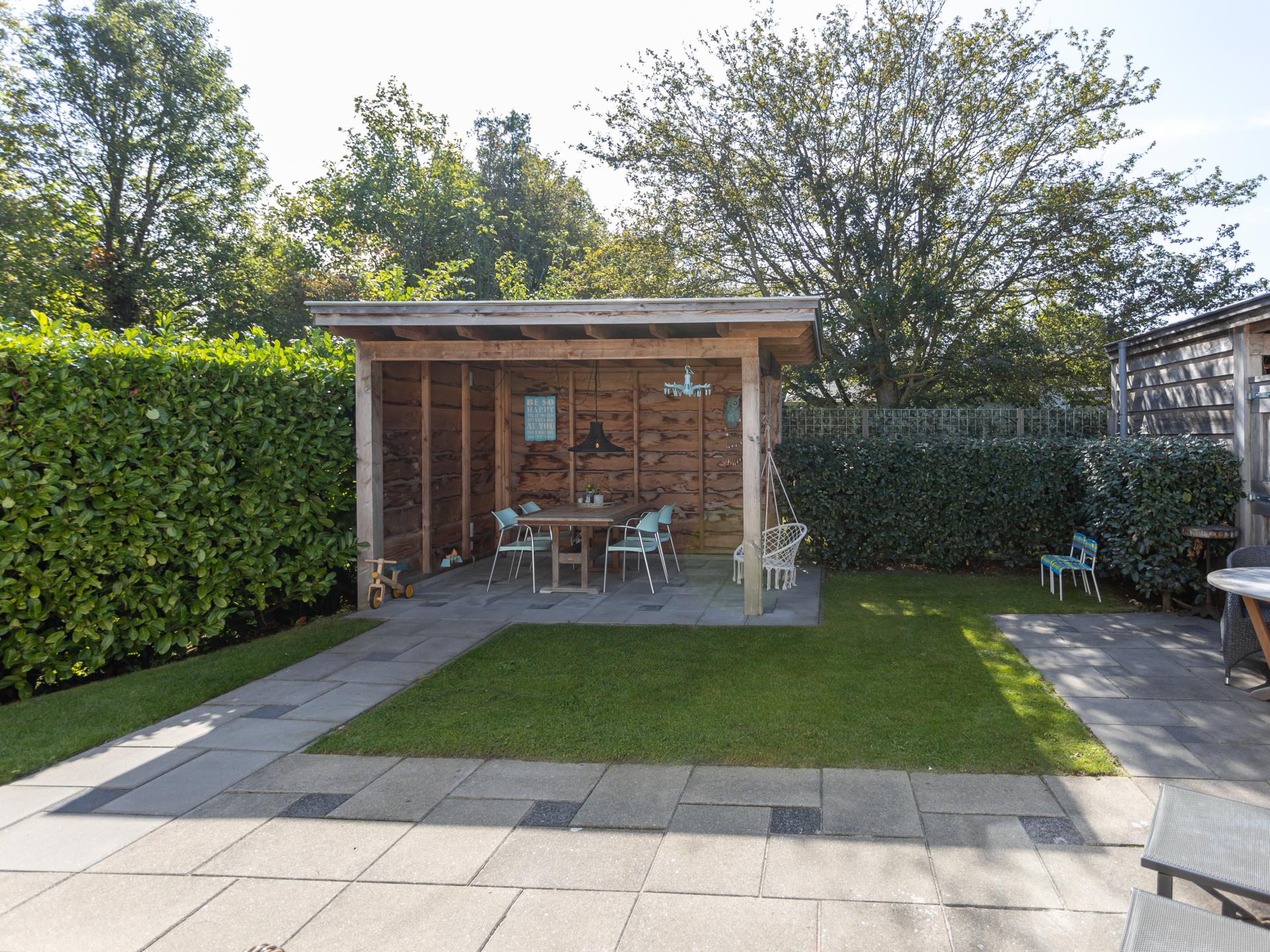 Der vollständig umschlossene, nach Süden ausgerichtete Garten macht diese Immobilie ideal für Familien, die Privatsphäre und Sicherheit schätzen. Die geräumige Veranda ist mit luxuriösen Gartenmöbeln, Liegestühlen und einem Essbereich ausgestattet. Im Gartenhaus stehen Ihnen ein Weber-Grill und ein Bollerwagen kostenlos zur Verfügung. Der Vorgarten mit stabilem Picknicktisch bietet einen zusätzlichen Platz, um die Abendsonne bis spät zu genießen
