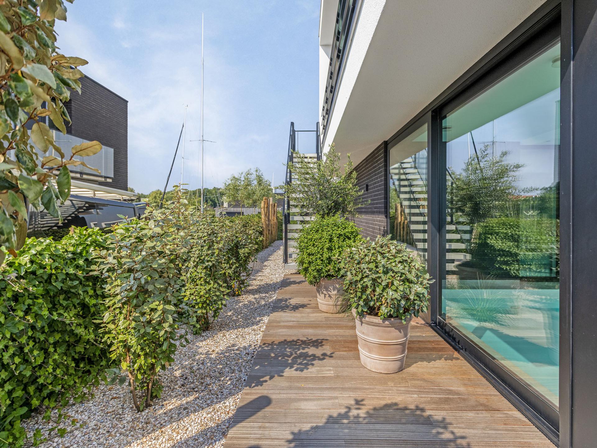 Exklusive Wasservilla mit eigenem Bootssteg und Innenpool. Das Haus hat 5 luxuriöse Schlafzimmer, jedes mit eigenem Bad. Die geräumige Wohnküche bildet das Herzstück des Hauses und ist mit dem gemütlichen Wohnzimmer verbunden. Die Dachterrasse bietet einen Blick auf den See. Die hochwertige Ausstattung und die ruhige Lage am Wasser machen dieses Haus zu einem einzigartigen Ort für einen besonderen Aufenthalt.