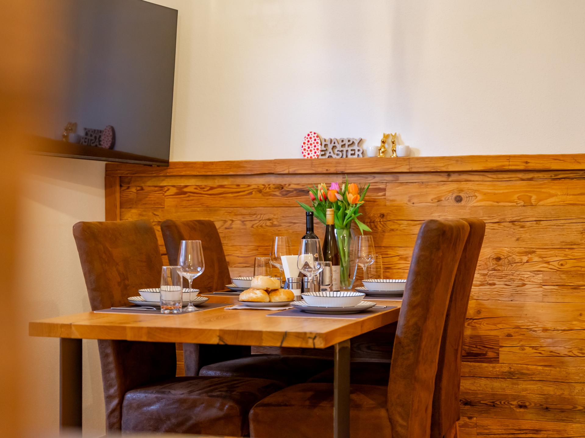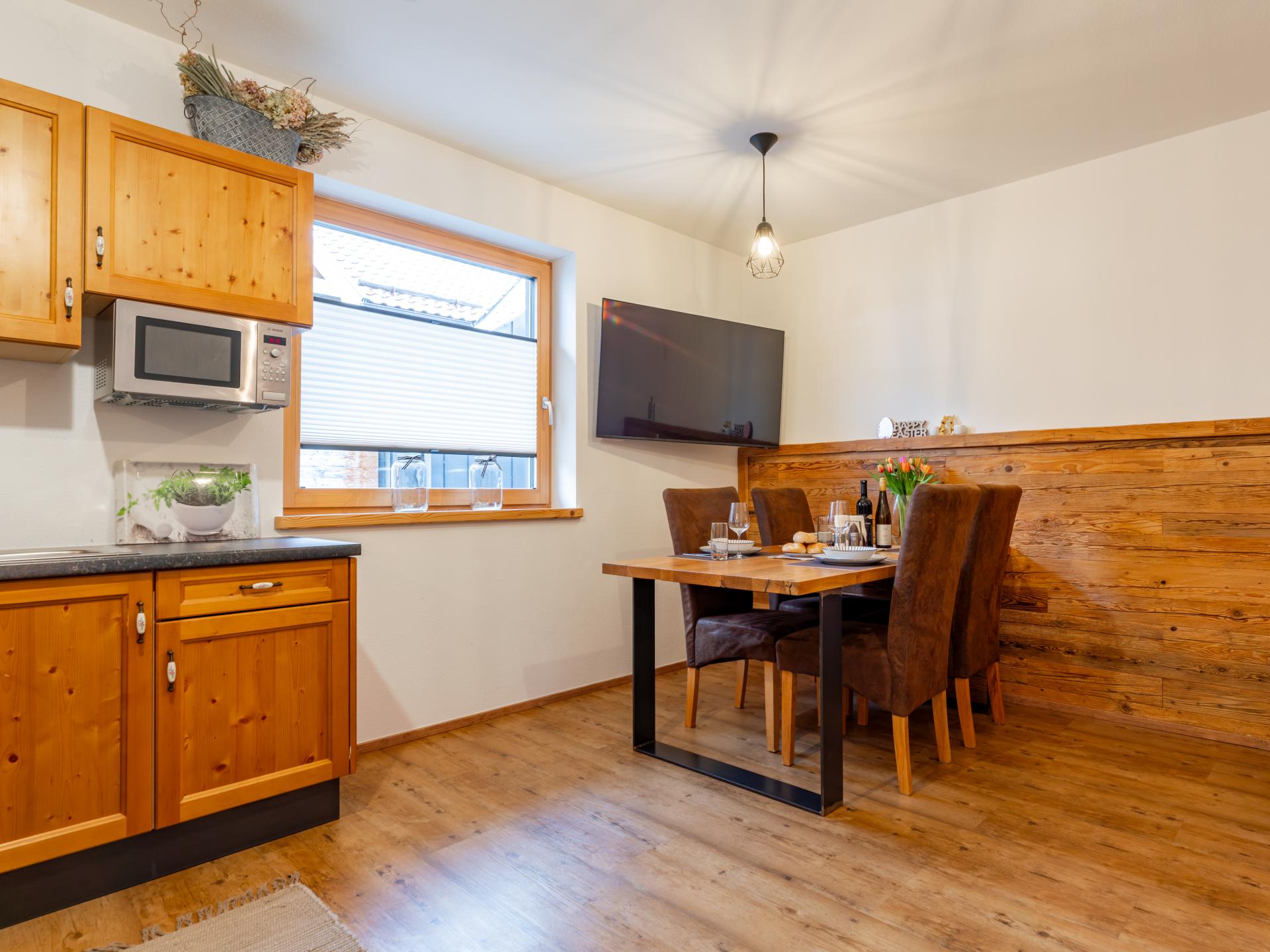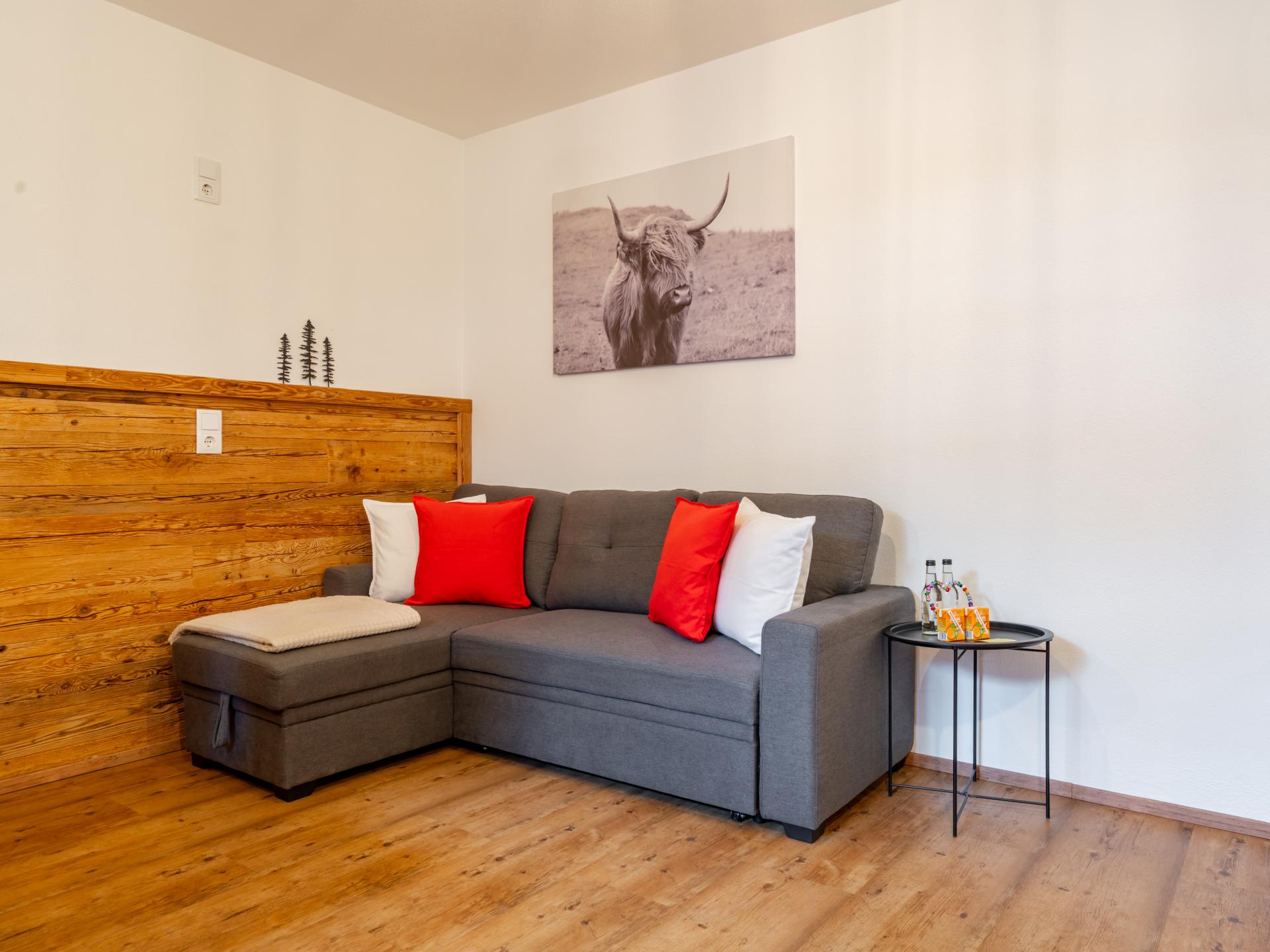 Family-friendly holiday apartment in Mittersill for 2–4 guests, ideal for two adults with two children or three adults. Features include a fully equipped kitchen, a cozy living/dining area, one double bedroom and a living/sleeping room with sofa bed. A small outdoor terrace with table is perfect for sunny moments. Close to the ski bus, hiking trails and top attractions in the Salzburger Land.