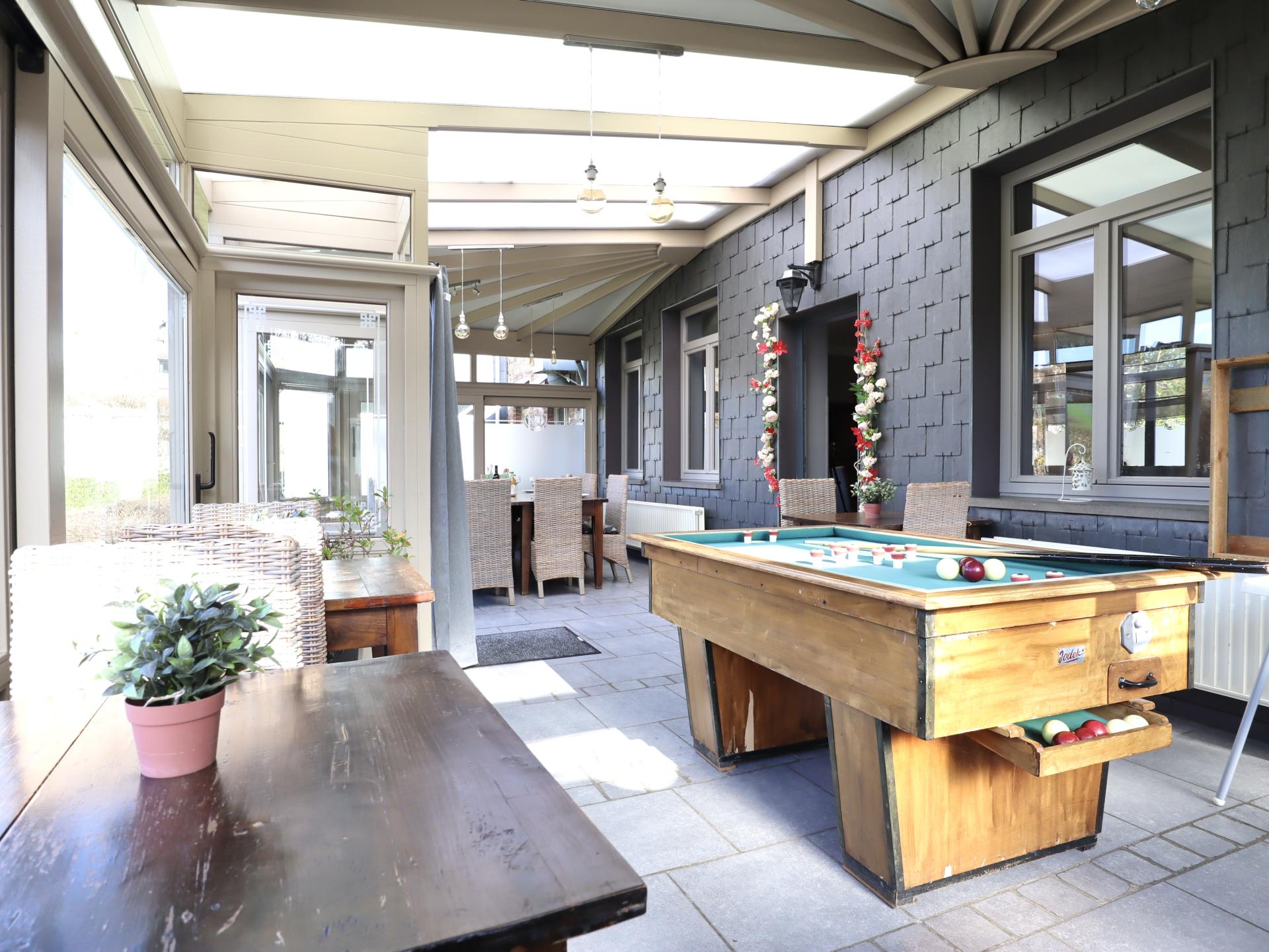 This spacious vacation home is ideal for a large family or for a corporate team-building event. You will enjoy a large, friendly dining room, a professional kitchen, and lounges with televisions, including one with a fireplace and another with a bar. You can also entertain yourself in the game rooms featuring three pool tables, an air hockey table, a foosball table, and a ping-pong table. In the fenced garden, children can enjoy the swing and slide.