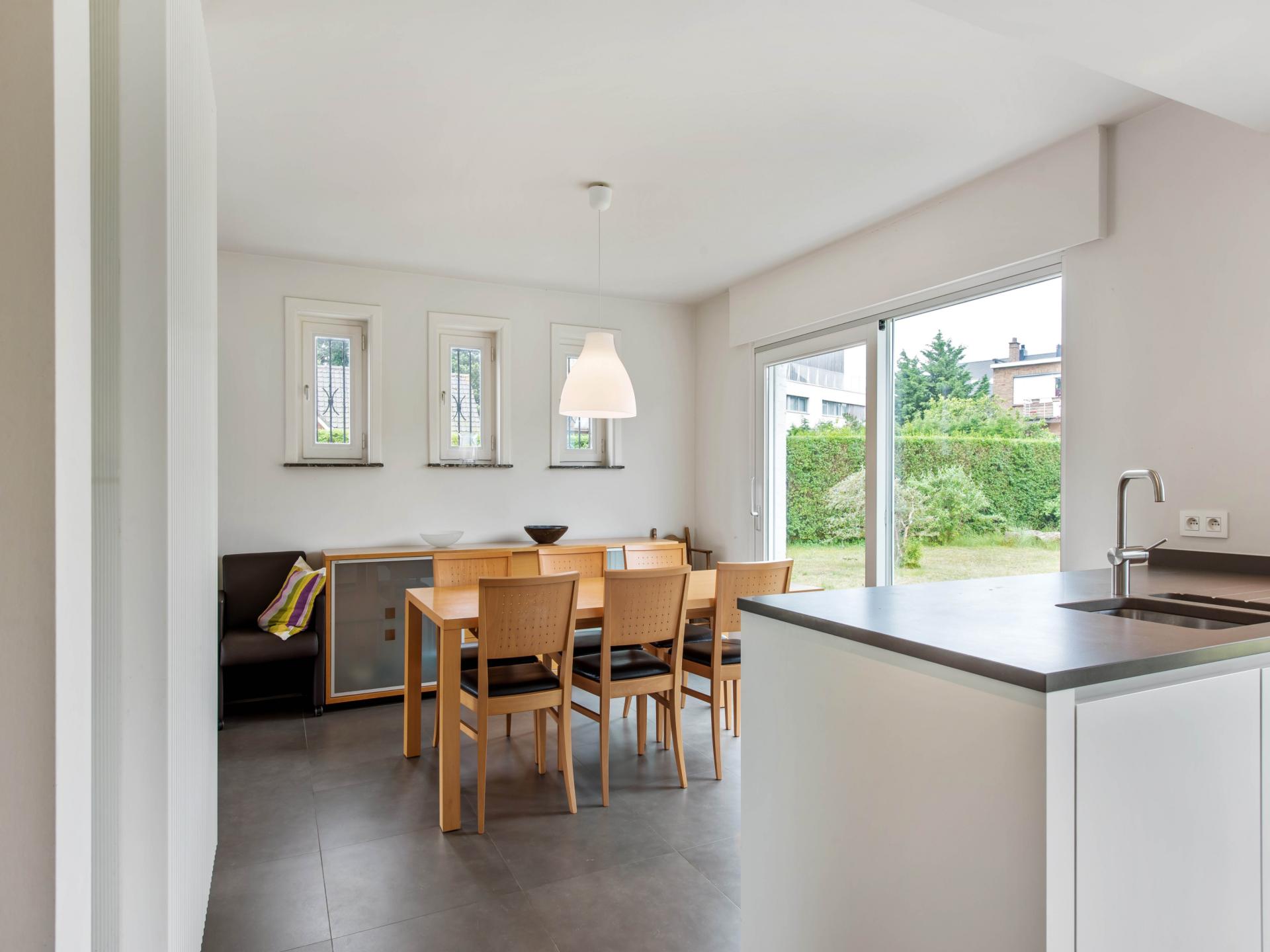 Villa Chez Nous in Koksijde is a fully renovated villa where peace and comfort come together. With three spacious bedrooms, a bright living room and a fully equipped open-plan kitchen, you will feel right at home. The bathroom has a bath with shower and there is an extra toilet downstairs - ideal for families. Outside, the sun terrace and large, enclosed garden beckon, perfect for children playing or a summer barbecue. The property is located in a quiet residential area of Koksijde-Bad.