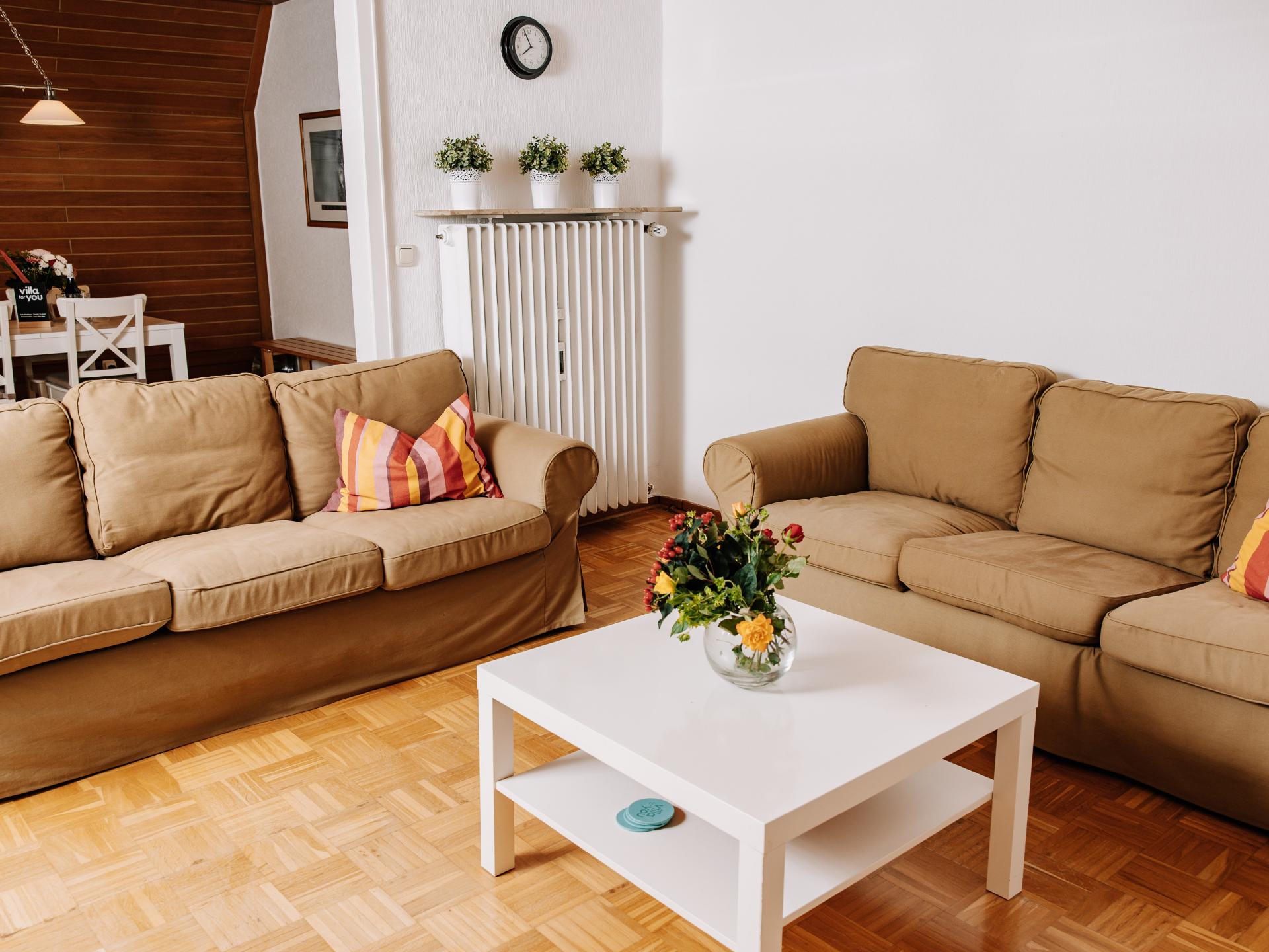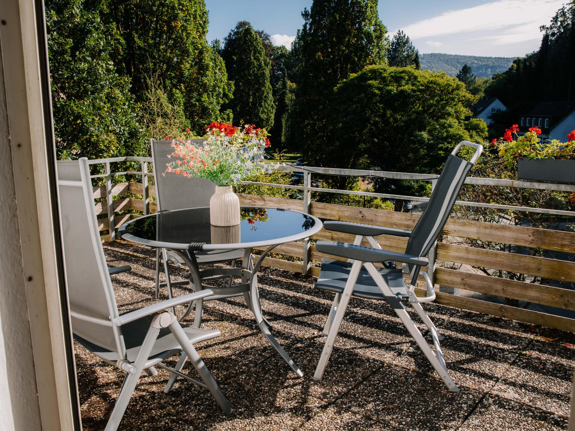 Situated on the edge of the forest in Bad Pyrmont, this accommodation offers the perfect base for relaxation and exploring the Weserbergland region. Just a few minutes away, the Hufeland thermal baths and the baroque spa gardens with their avenue of palm trees and exotic plants invite you to relax. Those interested in culture can visit the castle with its museum, the historic main avenue or viewpoints such as the Spelunkenturm and the Bismarck Tower. Hikers and cyclists will also get their money's worth: paths lead directly from the house into the wooded surroundings. The Löwensen district combines tranquillity with easy accessibility - so you can spend a relaxing holiday in the countryside and enjoy Bad Pyrmont's wide range of activities at the same time