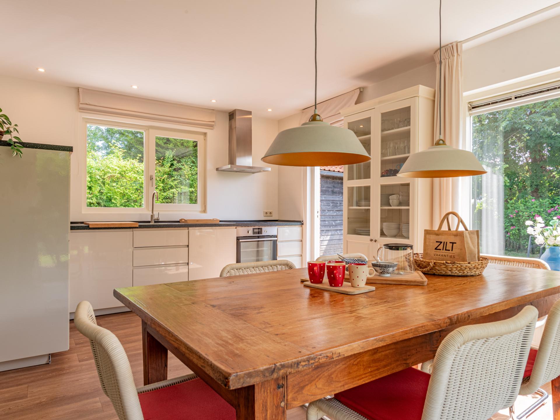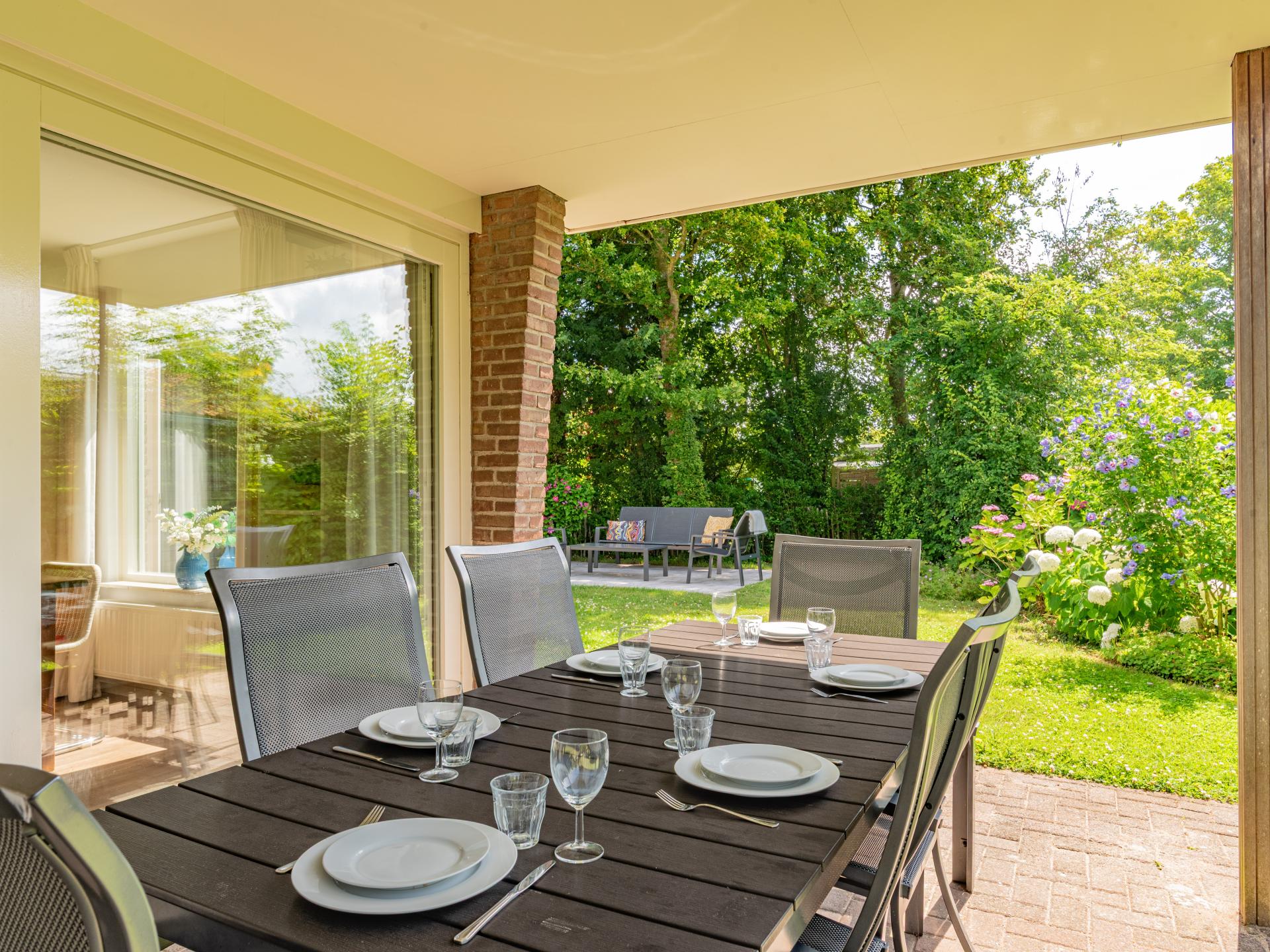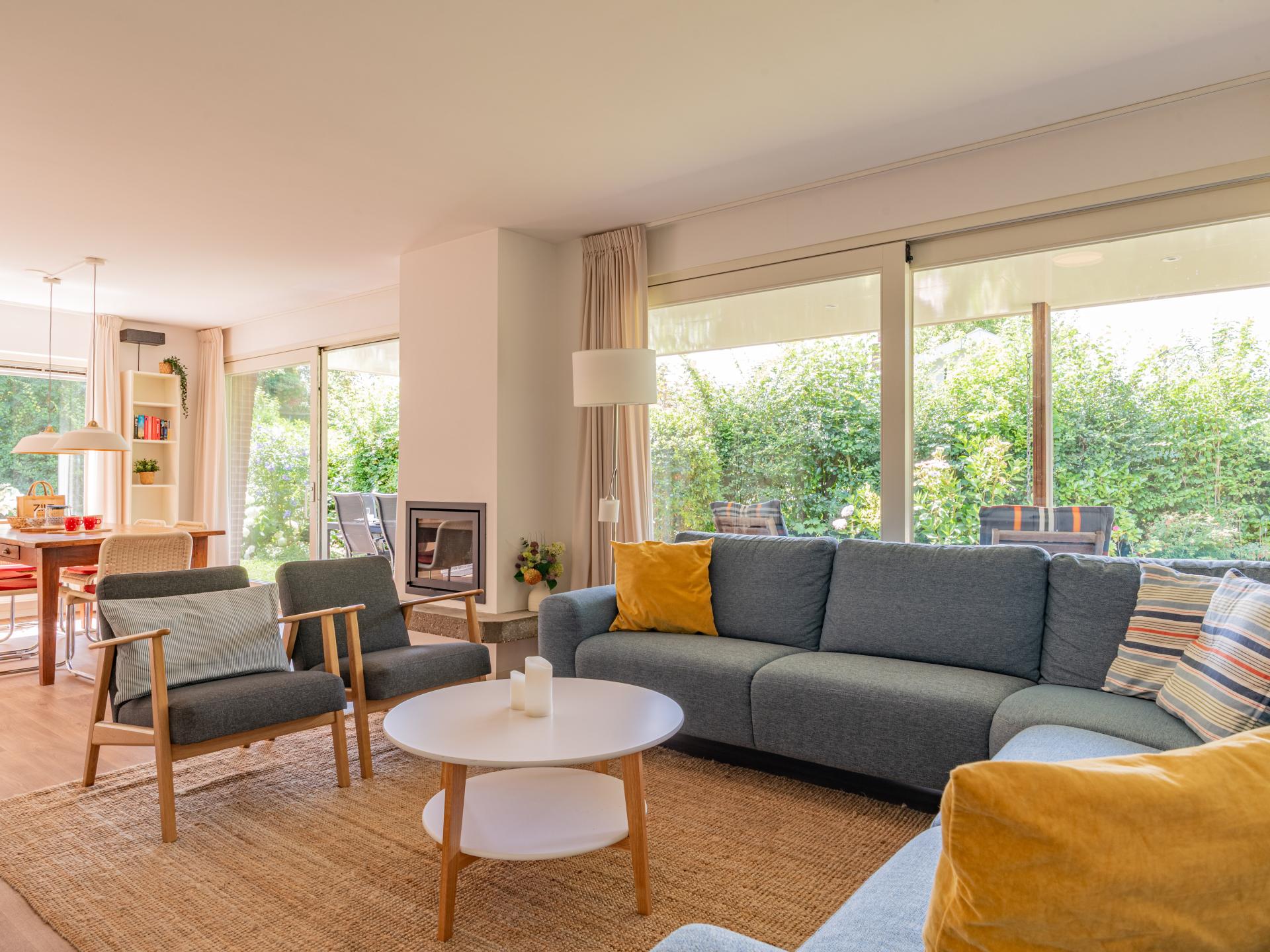 Detached 6-person bungalow at the foot of the dunes near Banjaard beach. A bright, comfortable home with a cozy living room and a wood stove, connected to an open kitchen. The bungalow has three bedrooms, one of which has an ensuite bathroom, plus a second bathroom and a separate toilet. Outside, you can enjoy a covered terrace and a spacious, green garden with plenty of privacy..
