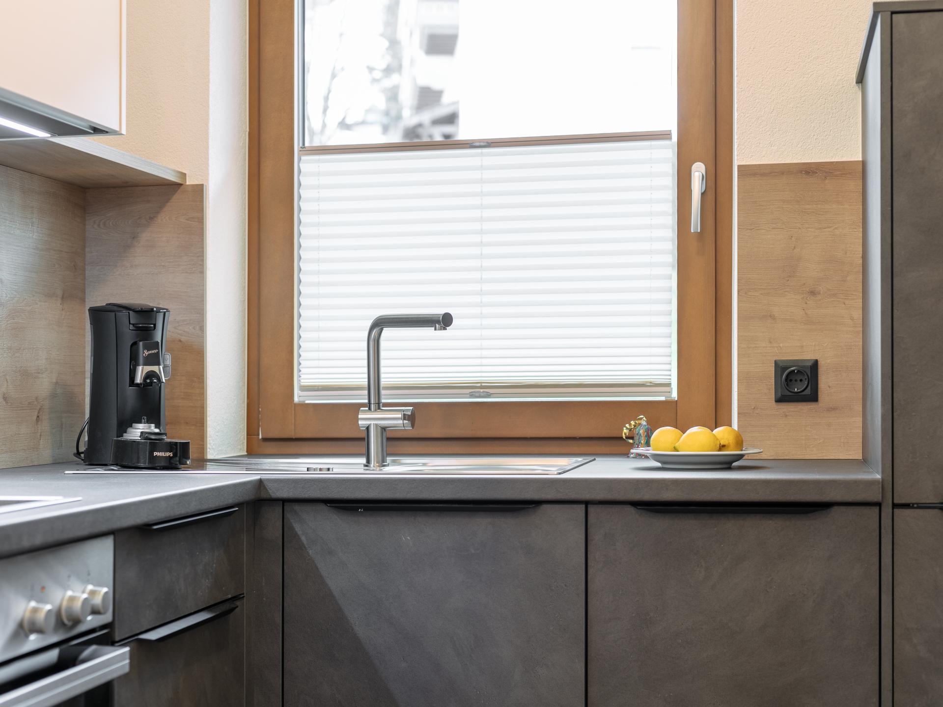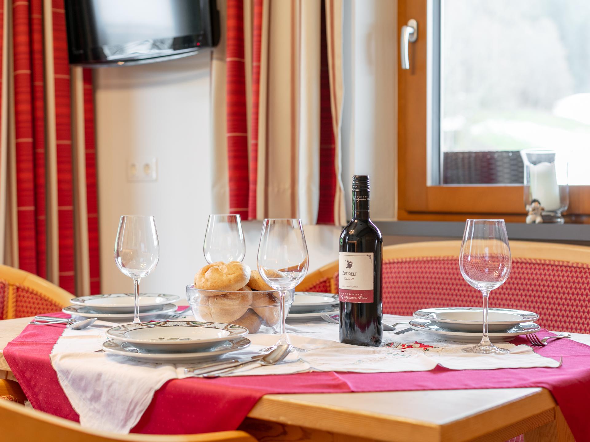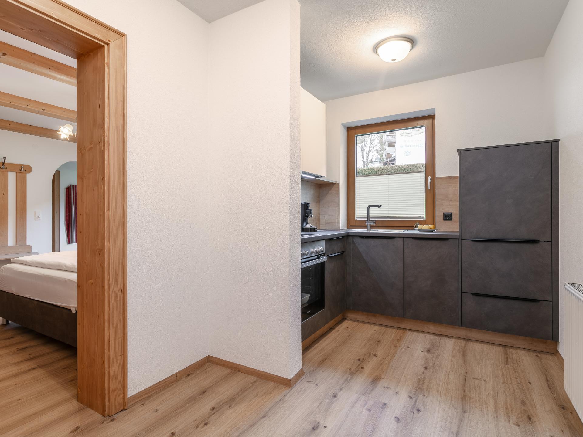 Cet appartement de haute qualité est situé au calme à la lisière. La grande chambre à coucher, le salon spacieux (avec canapé-lit double) et le coin repas, la cuisine entièrement équipée et la salle de bain avec WC séparés offrent confort. La salle de bien-être avec sauna et bain de vapeur est utilisable les mardis et jeudis, la cabine infrarouge tous les jours. L'arrêt du ski-bus est à seulement 10 m. En été, vous pouvez utiliser gratuitement les remontées mécaniques avec la Premium Card.