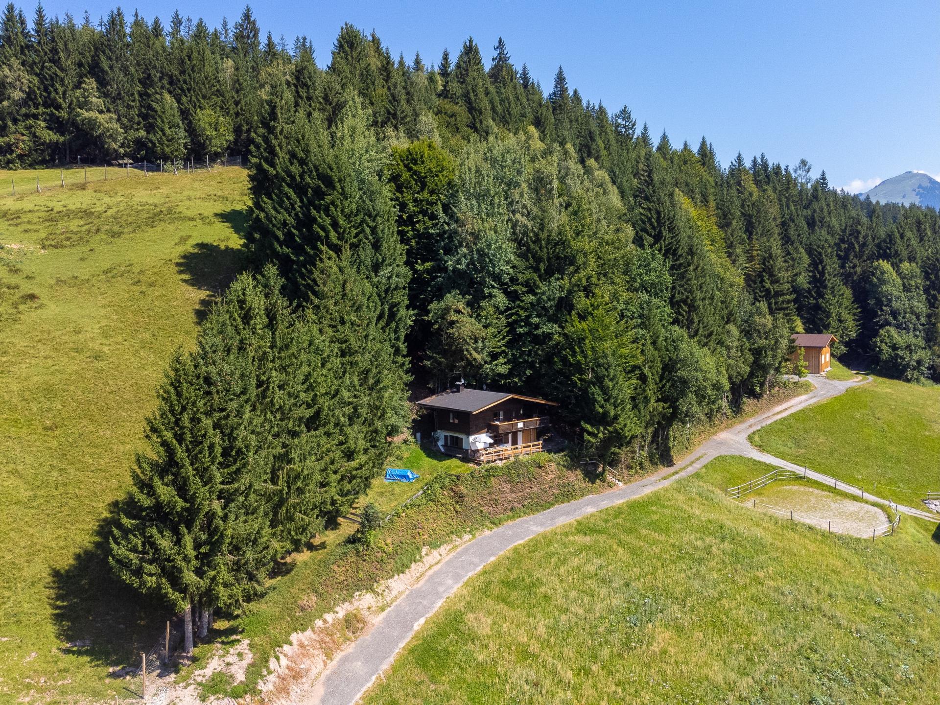 L'appartement de vacances à l'étage supérieur offre une cuisine-séjour ouverte bien équipée avec un coin salon, une chambre à coucher avec 1 lit superposé et 2 lits simples ainsi qu'une salle de bain. Le refuge est situé dans un cadre idyllique à côté d'un parc à gibier, les derniers 200 m se font à pied sur un chemin non goudronné. En hiver, des chaînes à neige sont nécessaires. Le chauffage est assuré par du bois et un poêle - pour des heures agréables. Il n'y a volontairement pas de WLAN & TV.