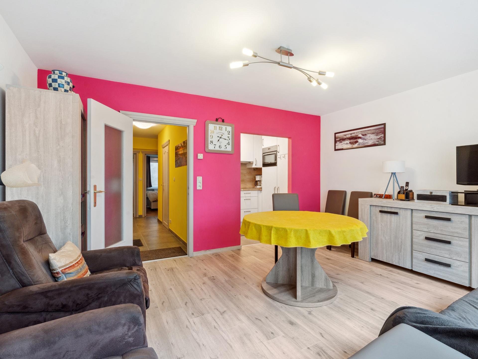 Appartement soigné au 1er étage, près du centre et de la digue, à distance de marche de la plage. Séjour lumineux avec cuisine séparée équipée. 2 grandes chambres avec lit double et rangements. Salle de bain avec douche et WC séparé. Idéal pour des vacances reposantes à Blankenberge.