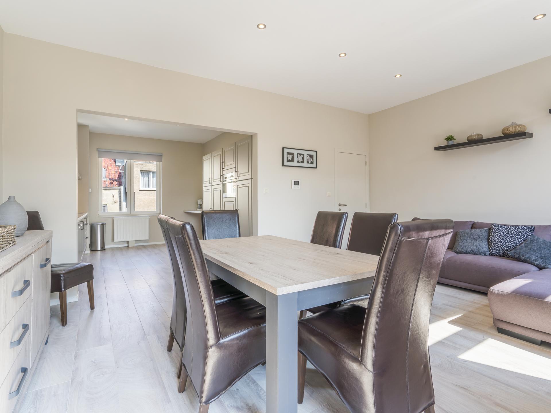 Magnifique duplex au 2? étage (sans ascenseur) au cœur de Blankenberge. Séjour lumineux avec grande cuisine entièrement équipée. À l’étage duplex, deux grandes chambres : une avec lit double et une avec lits superposés et lit simple. Salle de bain moderne avec douche à l’italienne et grande terrasse avec salon.