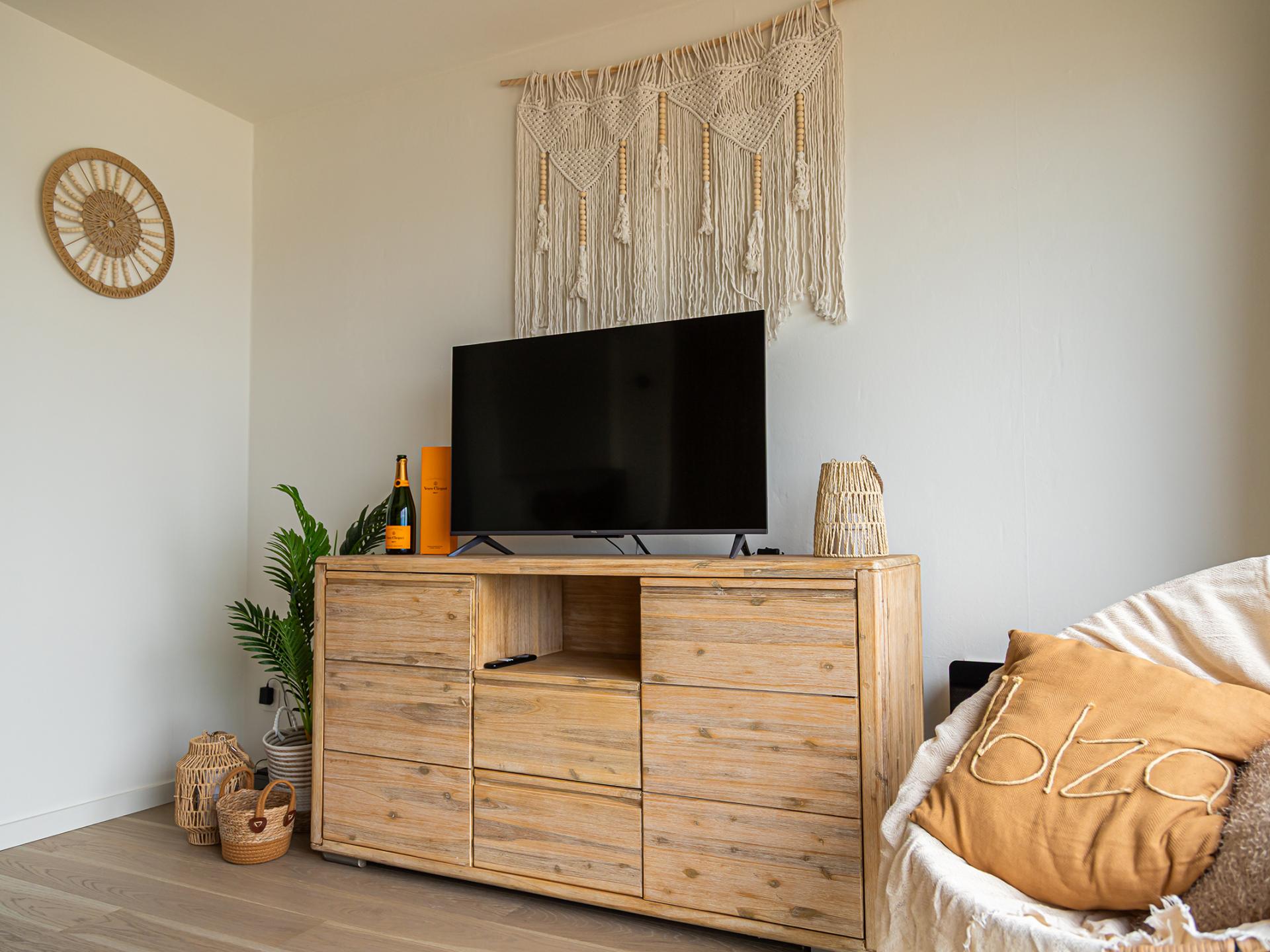 Appartement au 9e étage, idéal pour des vacances élégantes avec vue panoramique sur la mer. Récemment rénové et décoré dans un style bohème tendance. Une chambre avec lit double confortable. Séjour sur toute la largeur avec baies vitrées et cuisine ouverte équipée. Salle de bain avec baignoire et WC séparé. Petit balcon attenant à la chambre. Situation centrale près des commerces et transports.