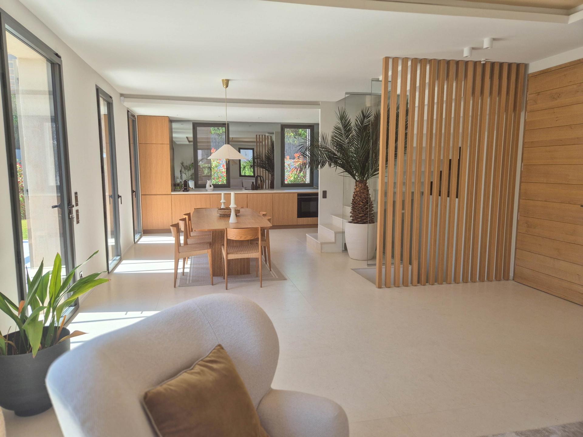 Cette villa située à la périphérie de Saint-Tropez a été conçue pour des journées de détente sous le soleil du sud de la France. À l'intérieur, vous trouverez des espaces de vie lumineux, une cuisine ouverte et plusieurs chambres avec salle de bains privative. À l'extérieur, un jardin clos avec une terrasse et une piscine privée vous attendent. Qu'il s'agisse de dîner ensemble, de se rafraîchir dans l'eau ou d'allumer le barbecue le soir, ici, chaque jour ressemble à des vacances.