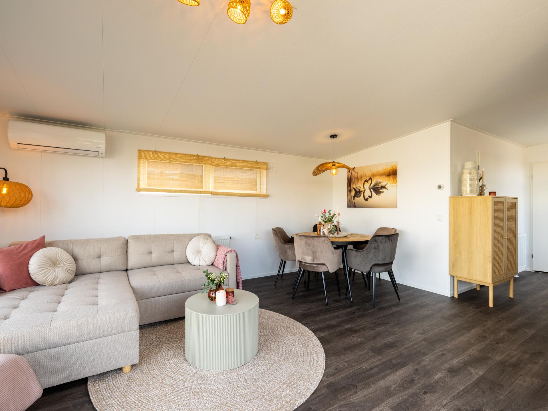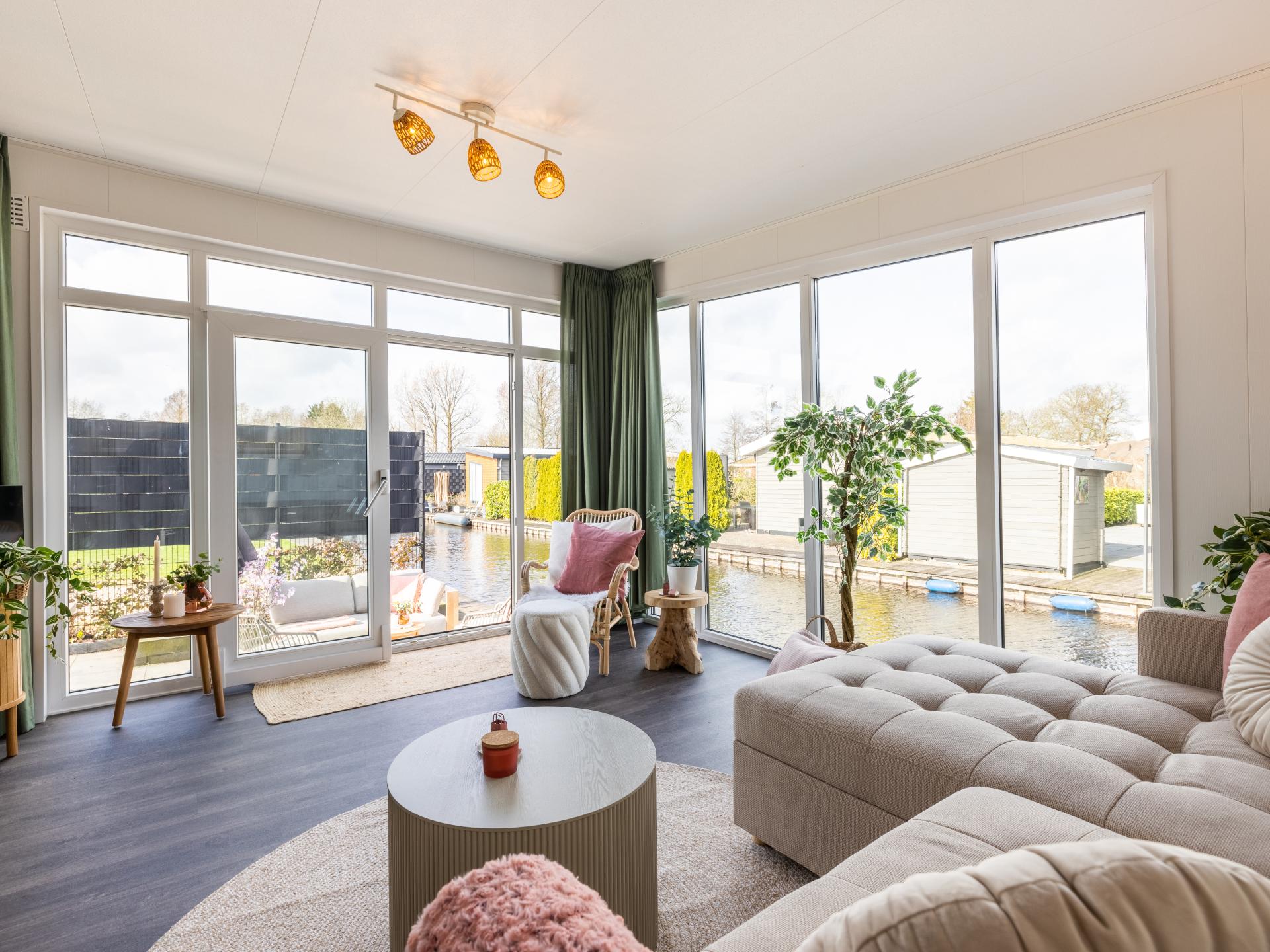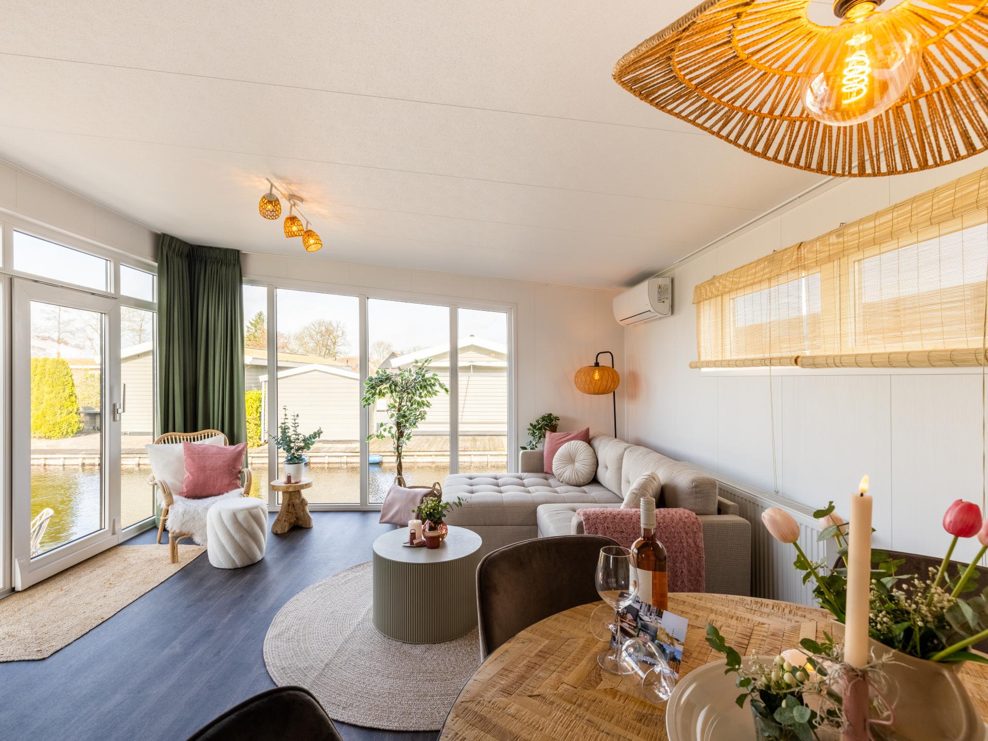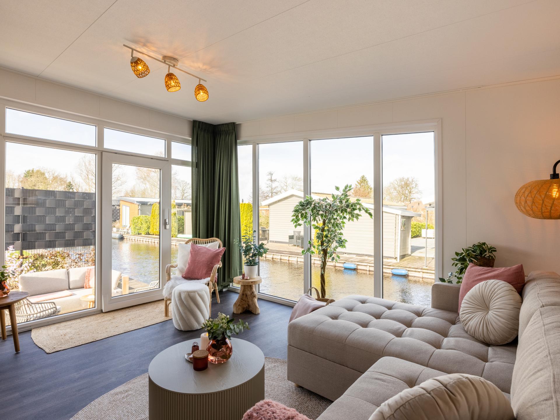 Lodge joliment aménagée au bord de l'eau avec une belle terrasse ensoleillée et une vue magnifique. Convient pour 6 personnes, avec 2 chambres et un canapé-lit dans le salon. La cuisine ouverte est entièrement équipée et la salle de bains moderne dispose d'une douche à l'italienne. Grâce aux grandes fenêtres, vous profitez de beaucoup de lumière. Un endroit confortable et complet pour se détendre et se ressourcer pleinement..