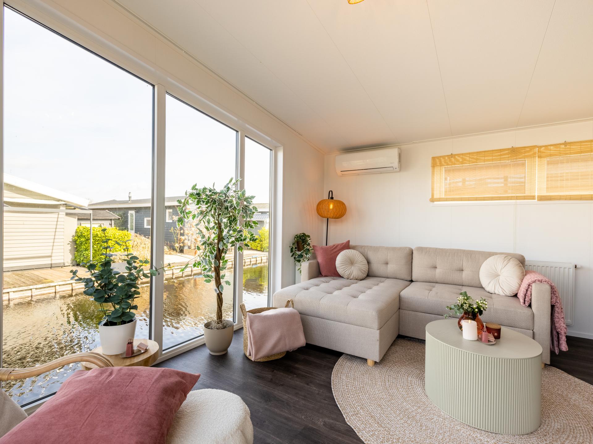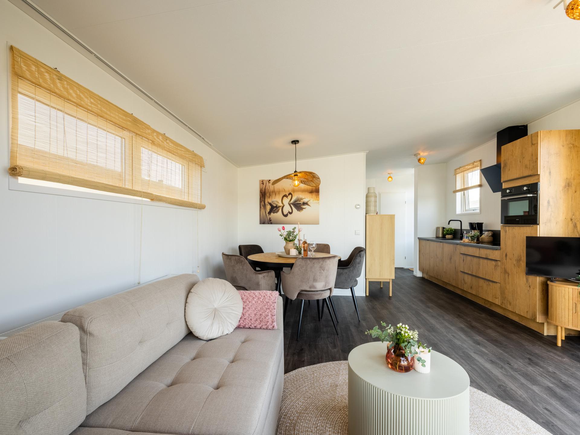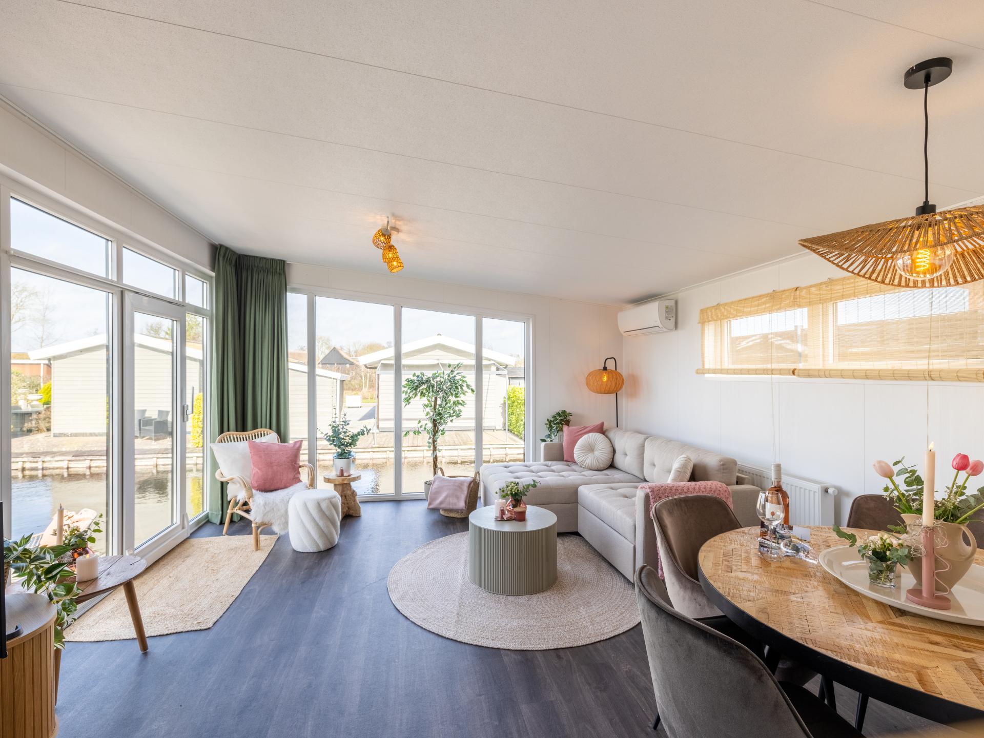 Lodge joliment aménagée au bord de l'eau avec une belle terrasse ensoleillée et une vue magnifique. Convient pour 6 personnes, avec 2 chambres et un canapé-lit dans le salon. La cuisine ouverte est entièrement équipée et la salle de bains moderne dispose d'une douche à l'italienne. Grâce aux grandes fenêtres, vous profitez de beaucoup de lumière. Un endroit confortable et complet pour se détendre et se ressourcer pleinement..