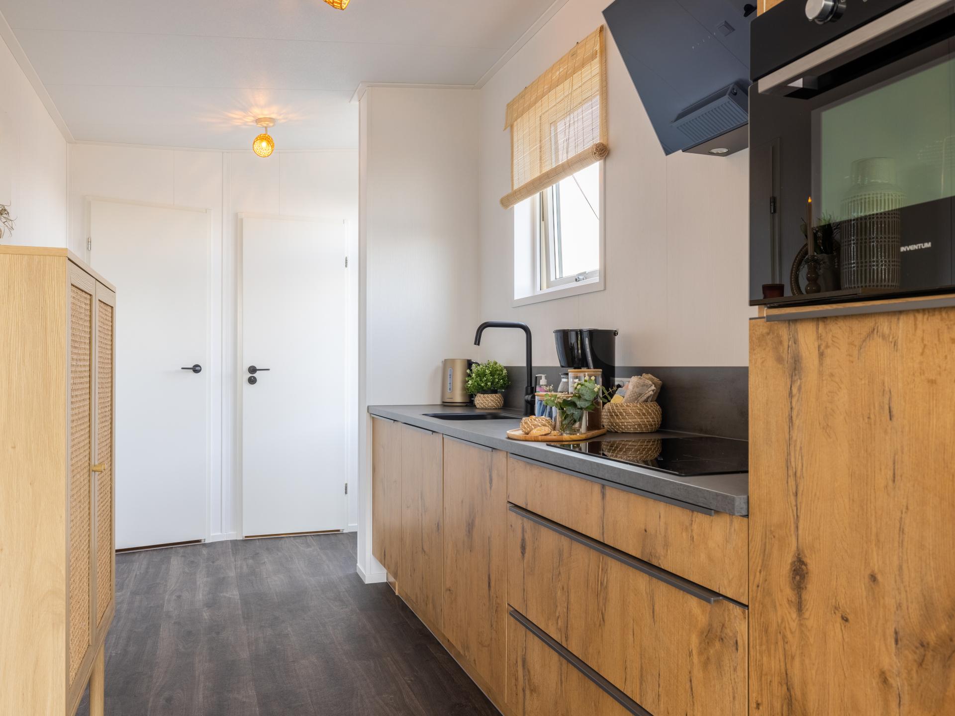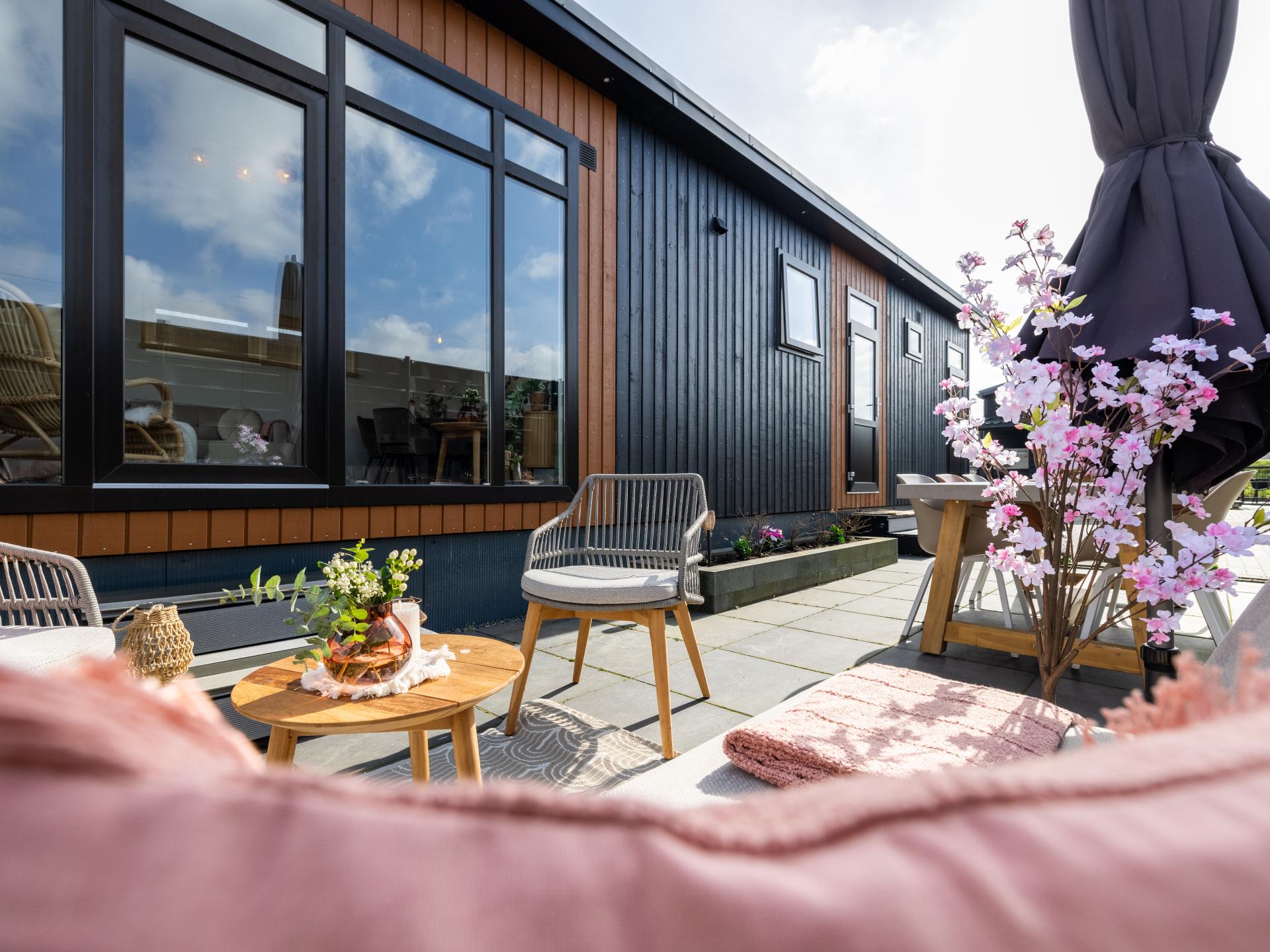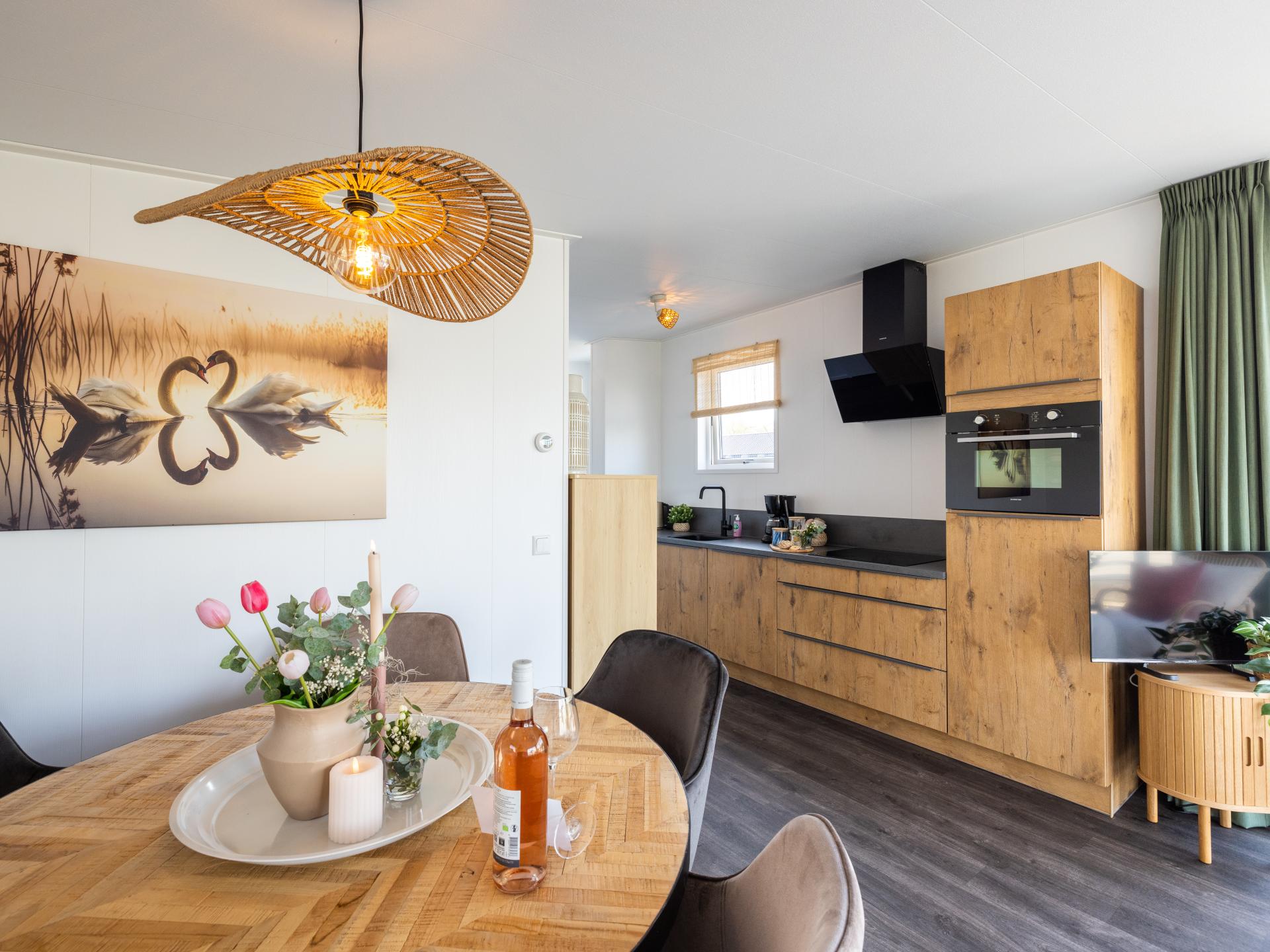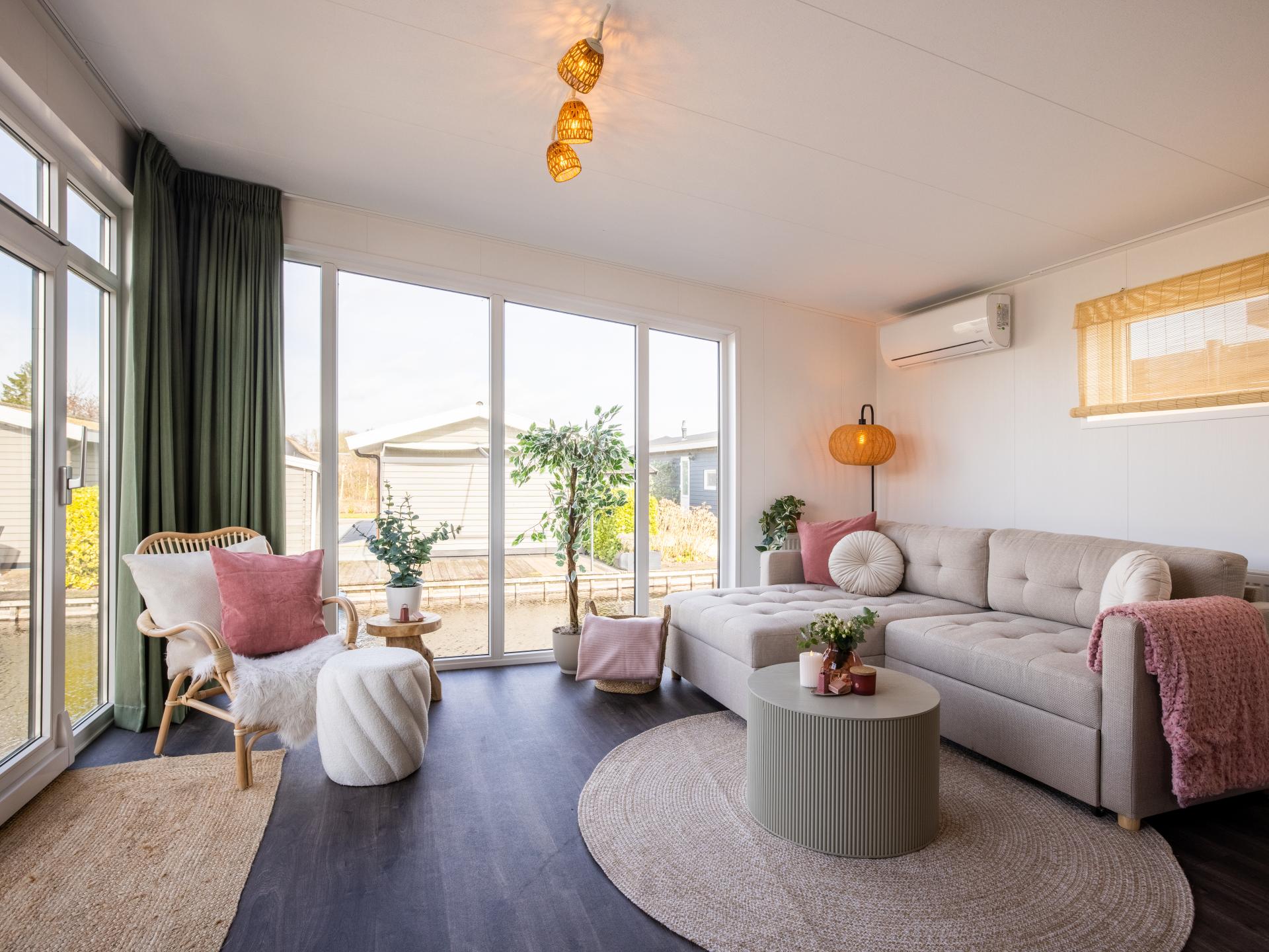 Lodge joliment aménagée au bord de l'eau avec une belle terrasse ensoleillée et une vue magnifique. Convient pour 6 personnes, avec 2 chambres et un canapé-lit dans le salon. La cuisine ouverte est entièrement équipée et la salle de bains moderne dispose d'une douche à l'italienne. Grâce aux grandes fenêtres, vous profitez de beaucoup de lumière. Un endroit confortable et complet pour se détendre et se ressourcer pleinement..