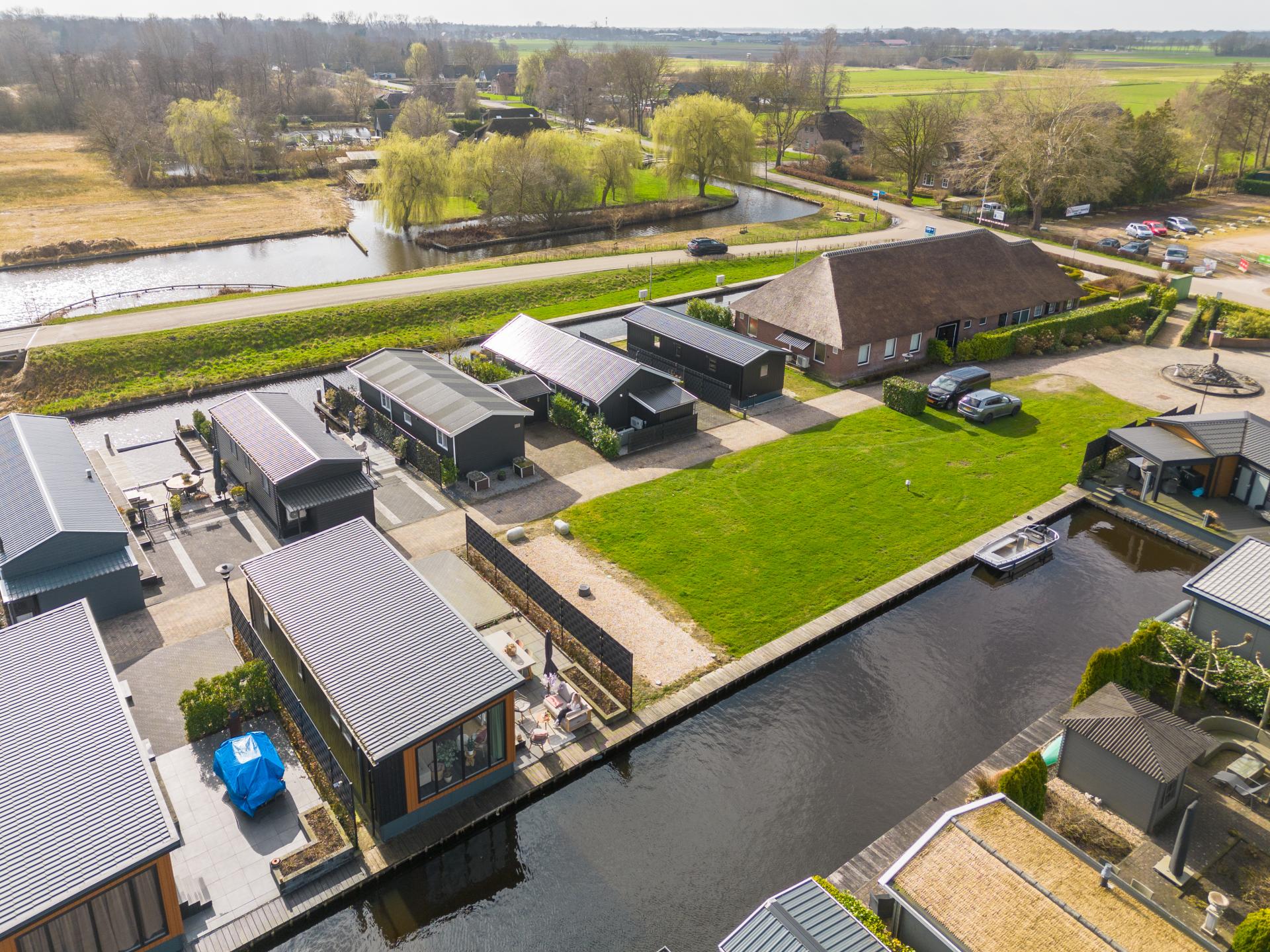 Le lodge est situé directement au bord de l’eau dans le charmant village de Giethoorn. Sur le parc, vous pouvez louer des bateaux et des vélos pour découvrir les canaux et la nature environnante. Explorez les maisons traditionnelles au toit de chaume et le parc national Weerribben-Wieden, idéal pour la détente et les activités en plein air.