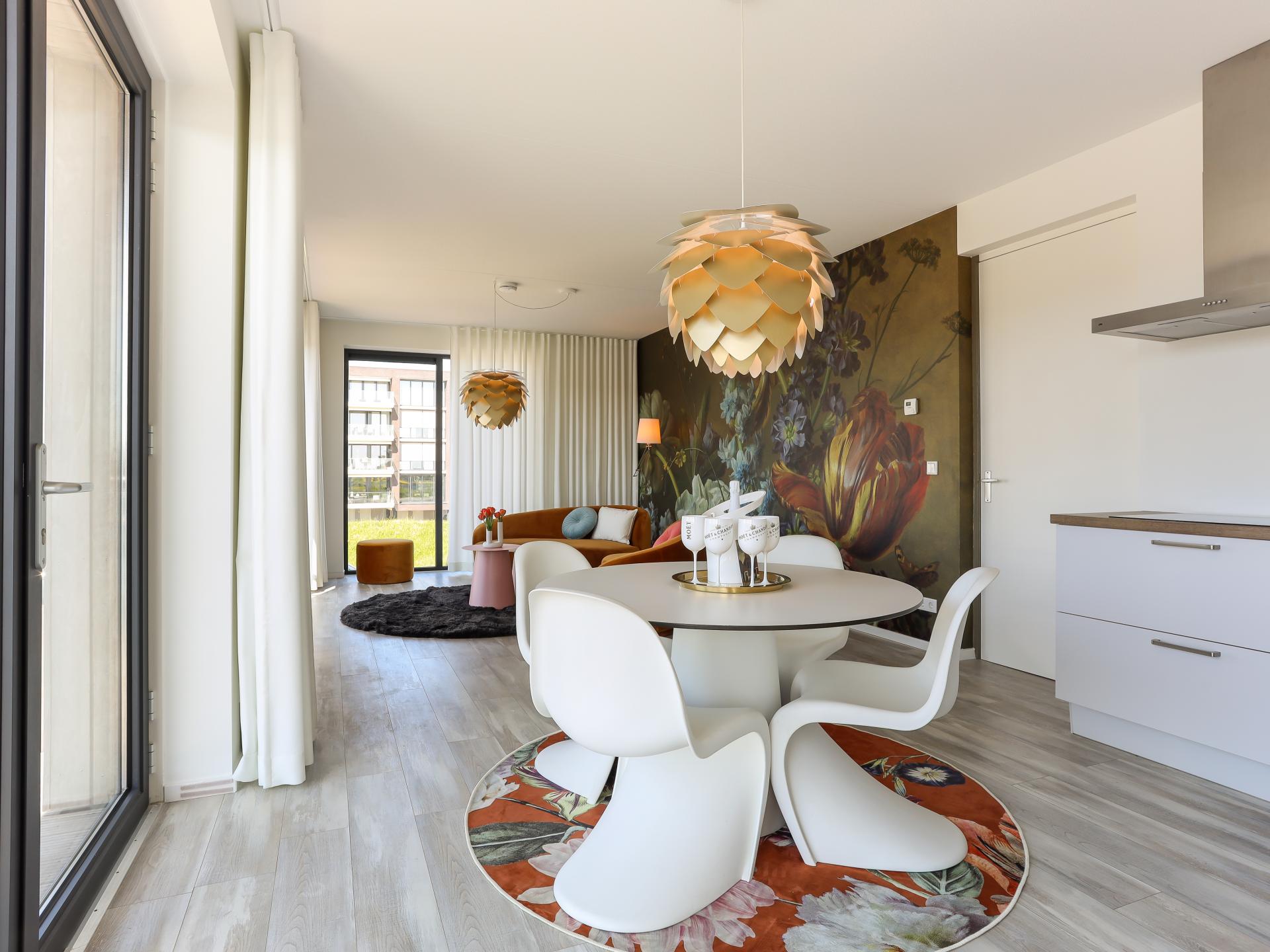 Appartement design luxueusement aménagé au premier étage avec vue sur le port de Kamperland. Le salon lumineux avec de grandes fenêtres et une cuisine ouverte donne sur un balcon d'où l'on peut admirer l'eau et les bateaux. Avec deux chambres confortables, une salle de bain moderne et un emplacement de parking privé pour deux voitures, vous pourrez profiter ici de tout le calme à un emplacement privilégié au bord du port..