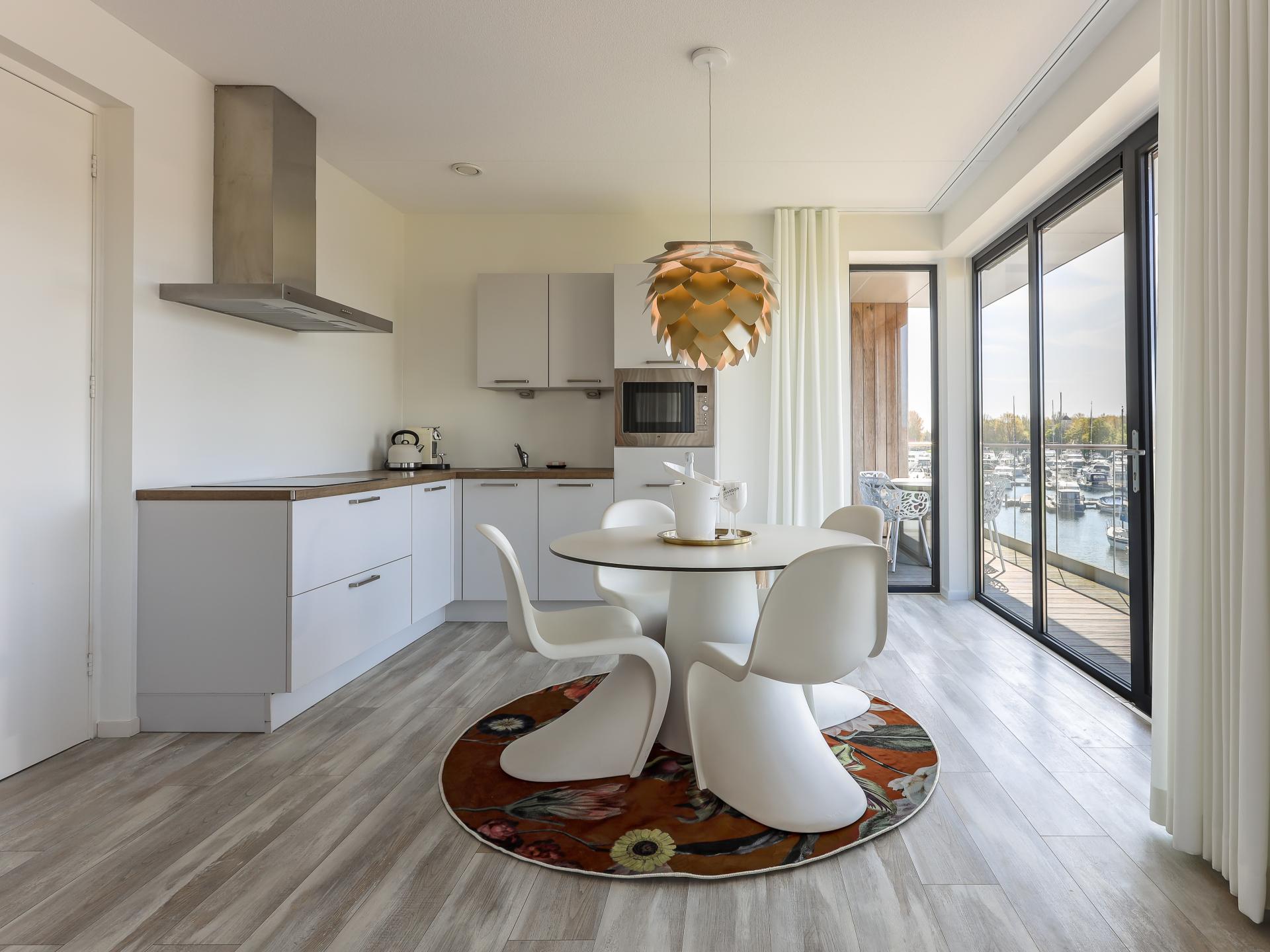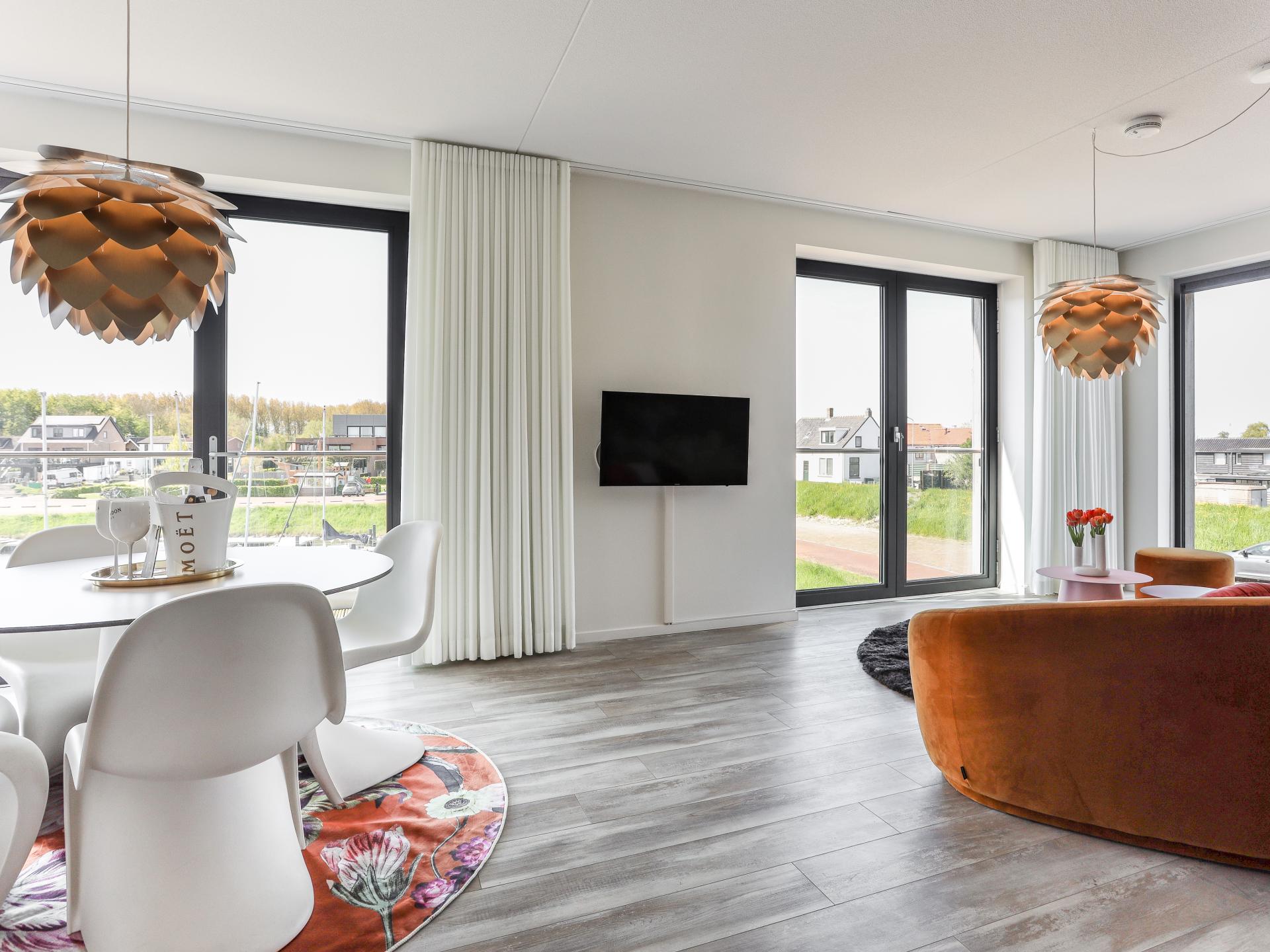 Les grandes fenêtres offrent beaucoup de lumière et une sensation d'espace, avec des vues sur l'eau depuis le salon et sur le paysage des polders depuis la chambre à coucher. Idéal pour les couples ou les petites familles à la recherche de confort et d'une situation centrale
