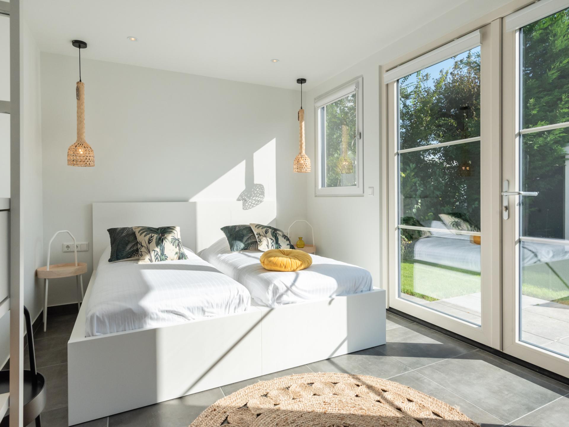 La disposition en deux ailes rend la maison idéale pour les familles ou les couples. Le jardin offre beaucoup d'intimité avec un trampoline et plusieurs espaces pour s'asseoir. À l'arrivée, les lits sont faits et les serviettes sont fournies. Les animaux domestiques ne sont pas autorisés