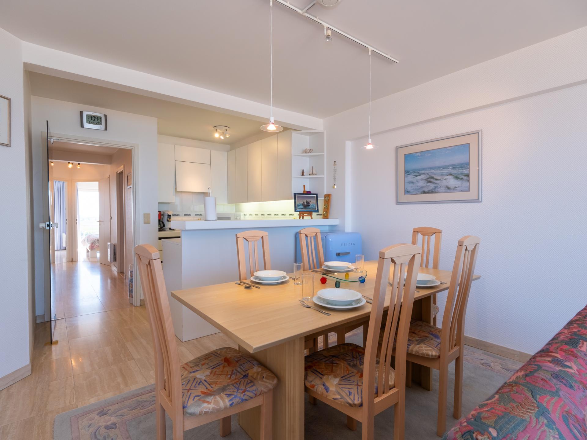 Appartement op de 8ste verdieping met 2 slaapkamers. Ruime, lichtrijke woonkamer met terras en zeezicht. Volledig ingerichte open keuken. Beide slaapkamers geven uit op zongericht terras achteraan met open uitzicht. Berging met wasmachine/droogkast, badkamer met ligbad en apart toilet. Topligging nabij winkels, openbaar vervoer en het nieuwe Casino. Opgelet: garage niet toegankelijk van 01/02/26 t.e.m. 30/06/26.
