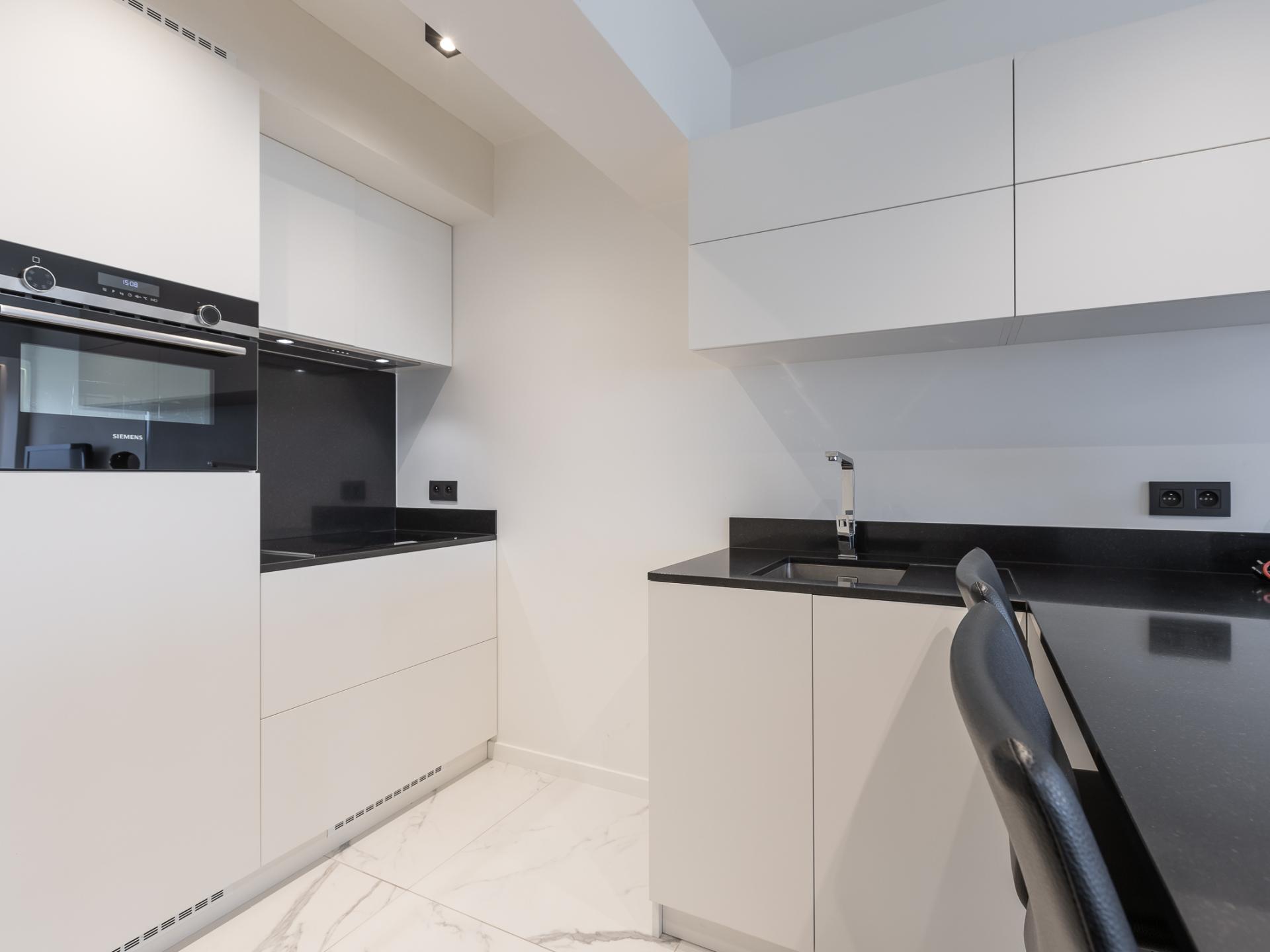 Luxe appartement op de 8ste verdieping met prachtig zeezicht. 1 slaapkamer met tweepersoonsbed en woonkamer met zetelbed voor 2. Lichtrijke leefruimte met open, volledig uitgeruste keuken. Moderne badkamer met inloopdouche en apart toilet. Slaapkamer met toegang tot zonovergoten terras met zicht op het hinterland. Stijlvol en comfortabel voor een vakantie aan zee.