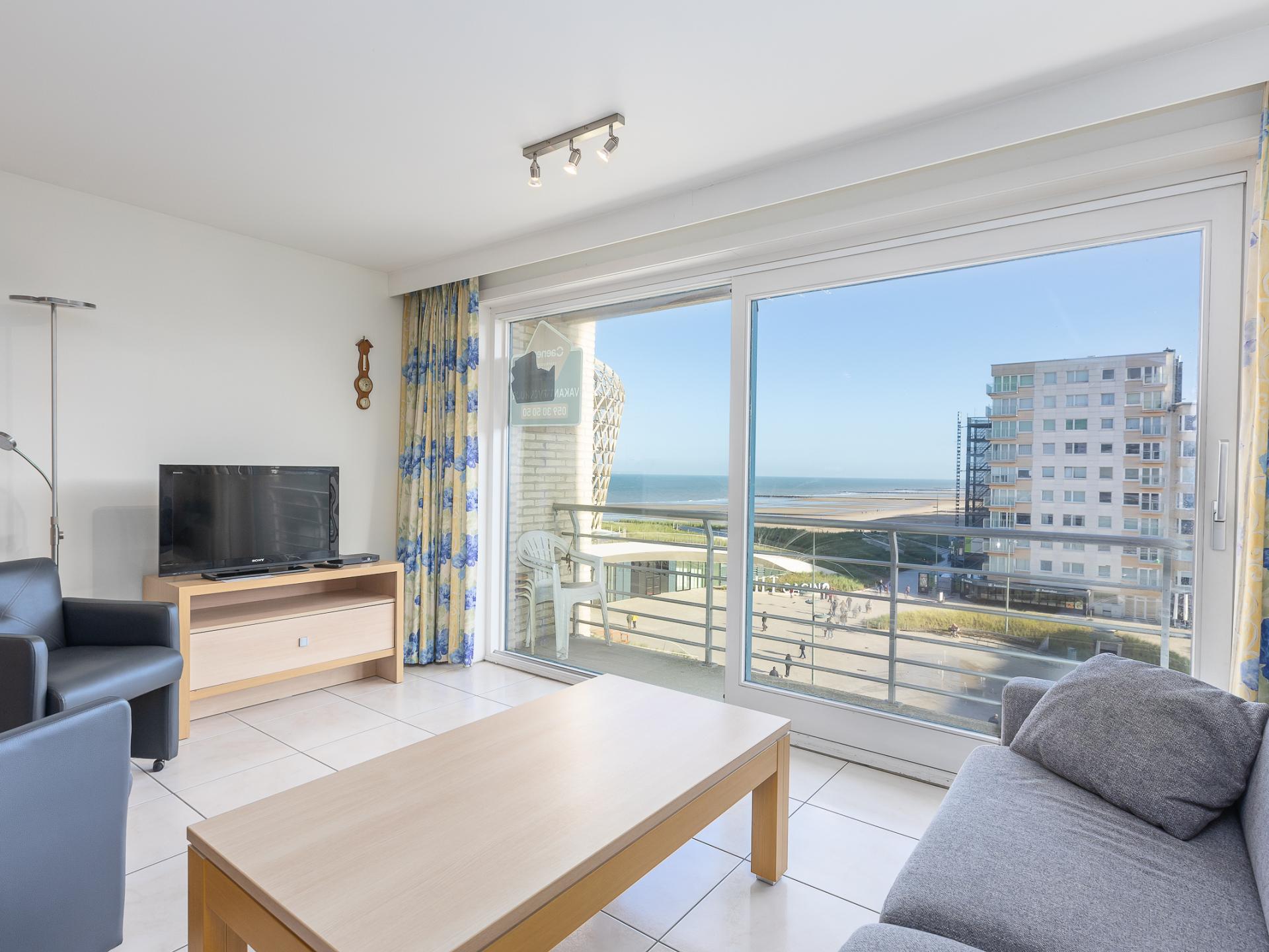 Prachtig appartement op de 5de verdieping met zeezicht en zicht op het nieuwe Casino. 1 slaapkamer met dubbel bed en verplaatsbaar bed op wieltjes, plus zetelbed voor 2. Lichtrijke leefruimte met open, volledig ingerichte keuken en eettafel. Badkamer met dubbele wastafel en ligbad, apart toilet. Centraal in Middelkerke, nabij tram, winkels en horeca.