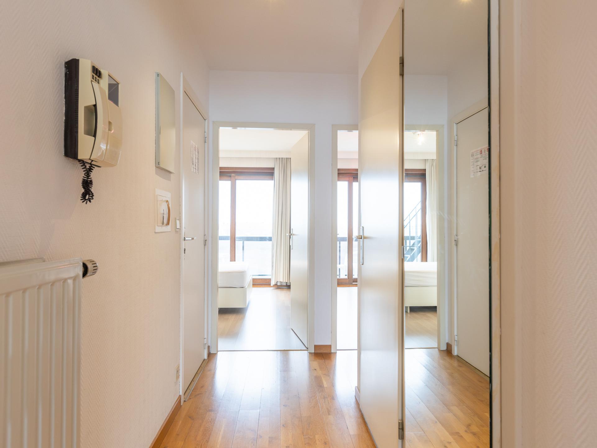Ruim en comfortabel appartement op de 2de verdieping met 2 slaapkamers: één met dubbel bed en één met stapelbed voor 3. Woonkamer met toegang tot terras met zeezicht. Badkamer met douche en apart toilet. Beide slaapkamers geven uit op zongericht terras met prachtig zicht op het hinterland. Ideaal voor een vakantie met ruimte, comfort en zon.