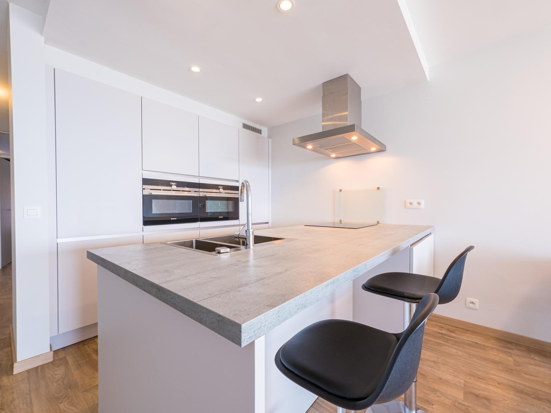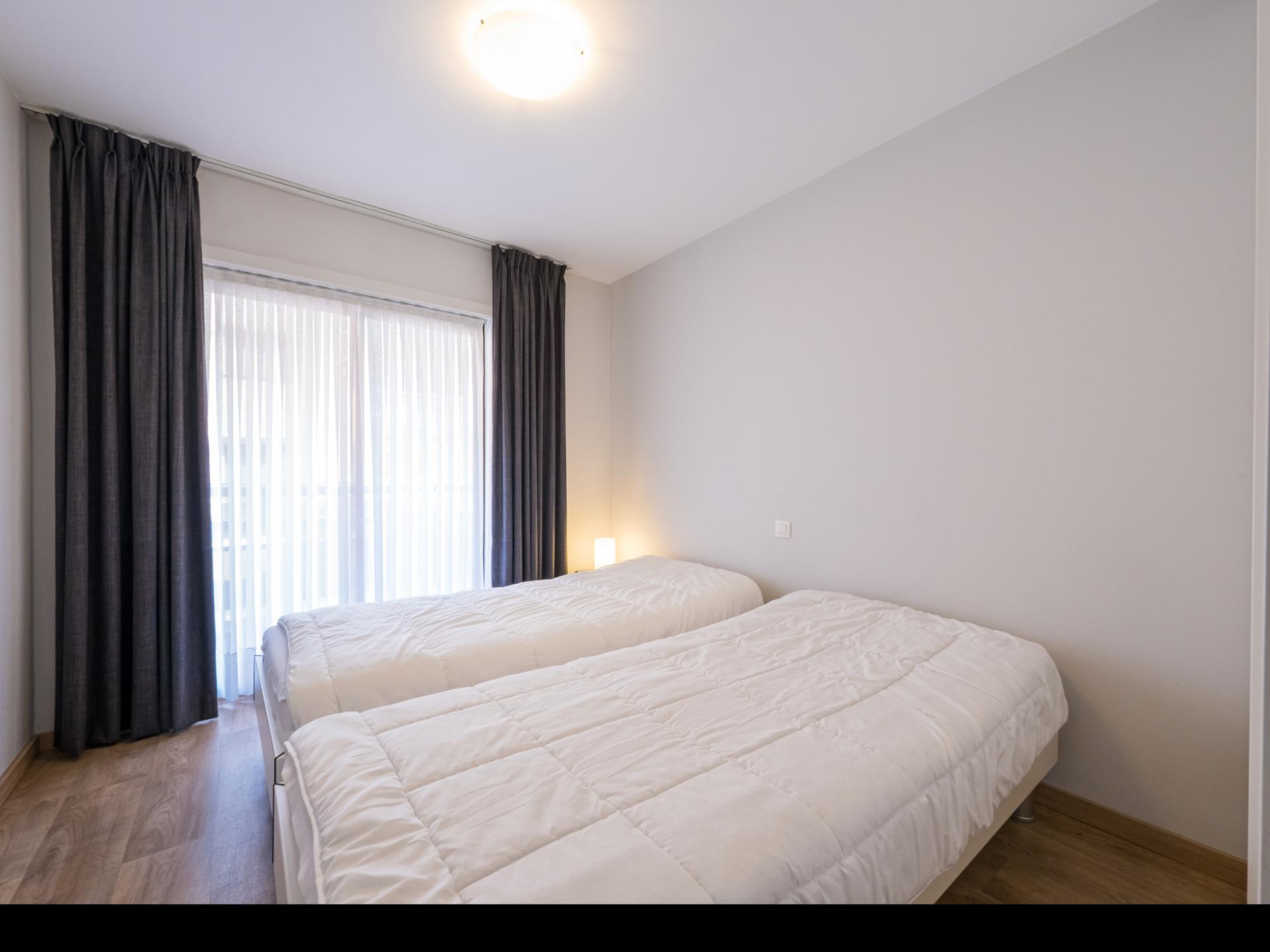 Prachtig vernieuwd appartement op de 1ste verdieping, ideaal voor gezinnen of vrienden. Twee slaapkamers: één met dubbel bed en één met twee enkele bedden. Lichtrijke leefruimte met gezellige zithoek en zeezicht, open volledig ingerichte keuken met kookeiland. Luxueuze badkamer met inloopdouche en apart toilet. Moderne luxe en centrale ligging voor een ontspannen verblijf.