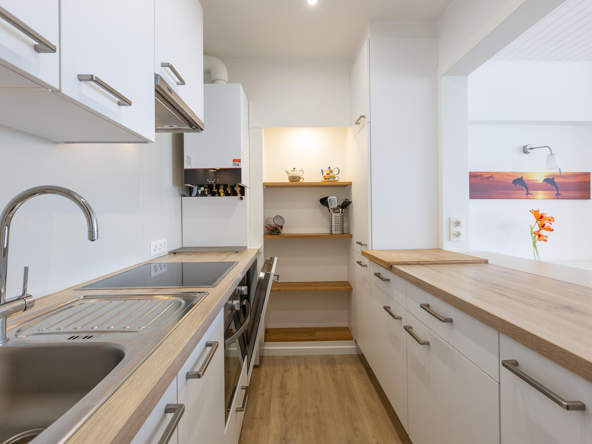 Appartement op de 3e verdieping met 2 slaapkamers: één met dubbel bed en één met 2 stapelbedden. Smaakvol ingerichte woonkamer met zetelbed voor 2 personen en prachtig zeezicht. Halfopen, volledig ingerichte keuken. Vernieuwde badkamer met inloopdouche en lavabo, apart toilet. Zongericht terrasje achteraan. Gelegen op de Zeedijk, op ca. 300 m van het casino, net buiten het centrum.