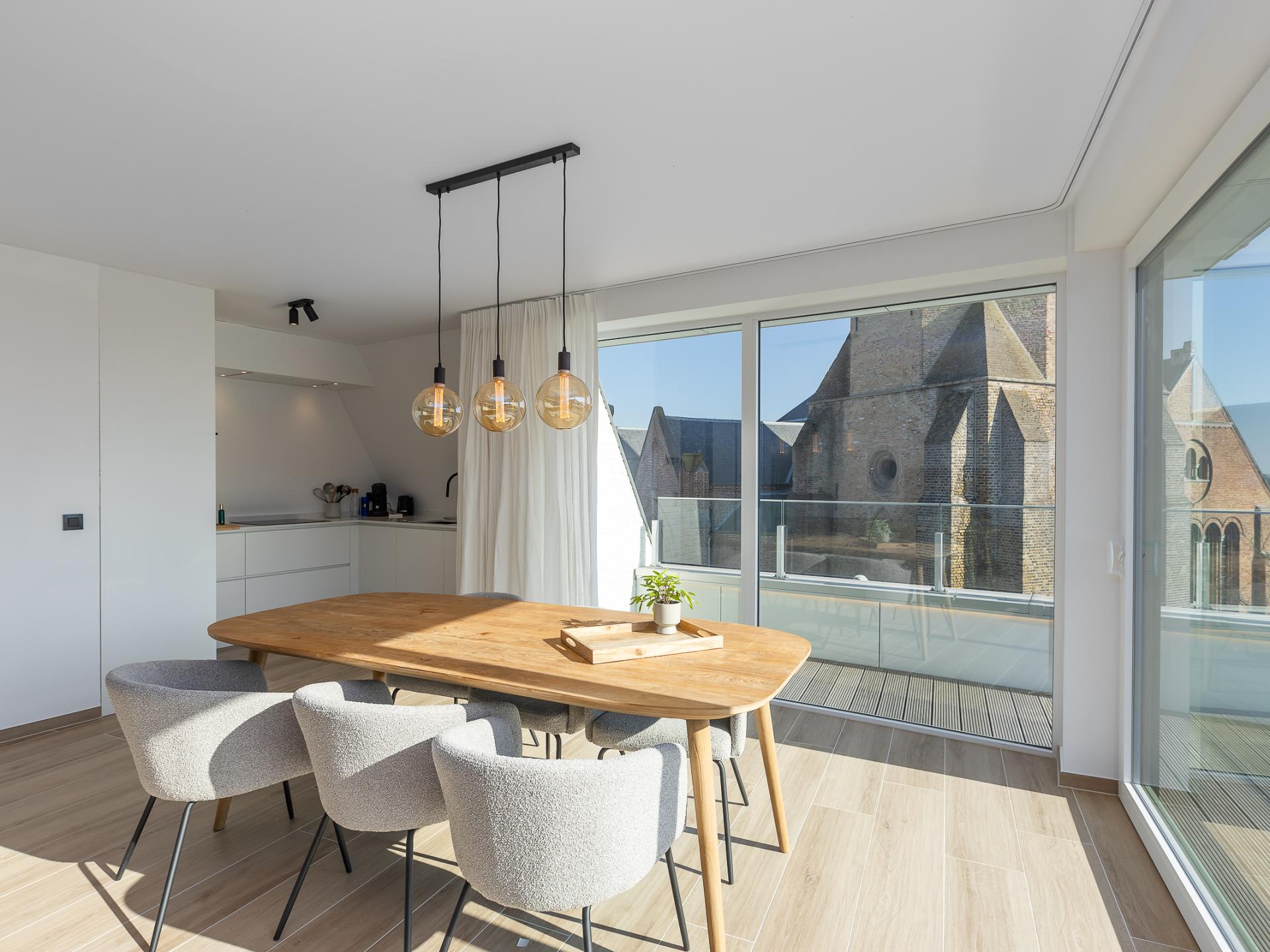 Ruim hoekappartement op de 4de verdieping met 3 slaapkamers: 2 met dubbel bed en 1 met 2 stapelbedden uitschuifbed (max. 9 pers.). Lichte woonkamer met grote ramen en rondom zonneterras. Open, volledig uitgeruste keuken. Berging met wasmachine en droogkast. Badkamer met inloopdouche extra toilet en 1 ensuite badkamer. Centraal bij park, Zeedijk en nieuw Casino. Garage niet toegankelijk 09/02/2026–30/06/2026. Wifi: ja. Lakens/handdoeken zelf meenemen..