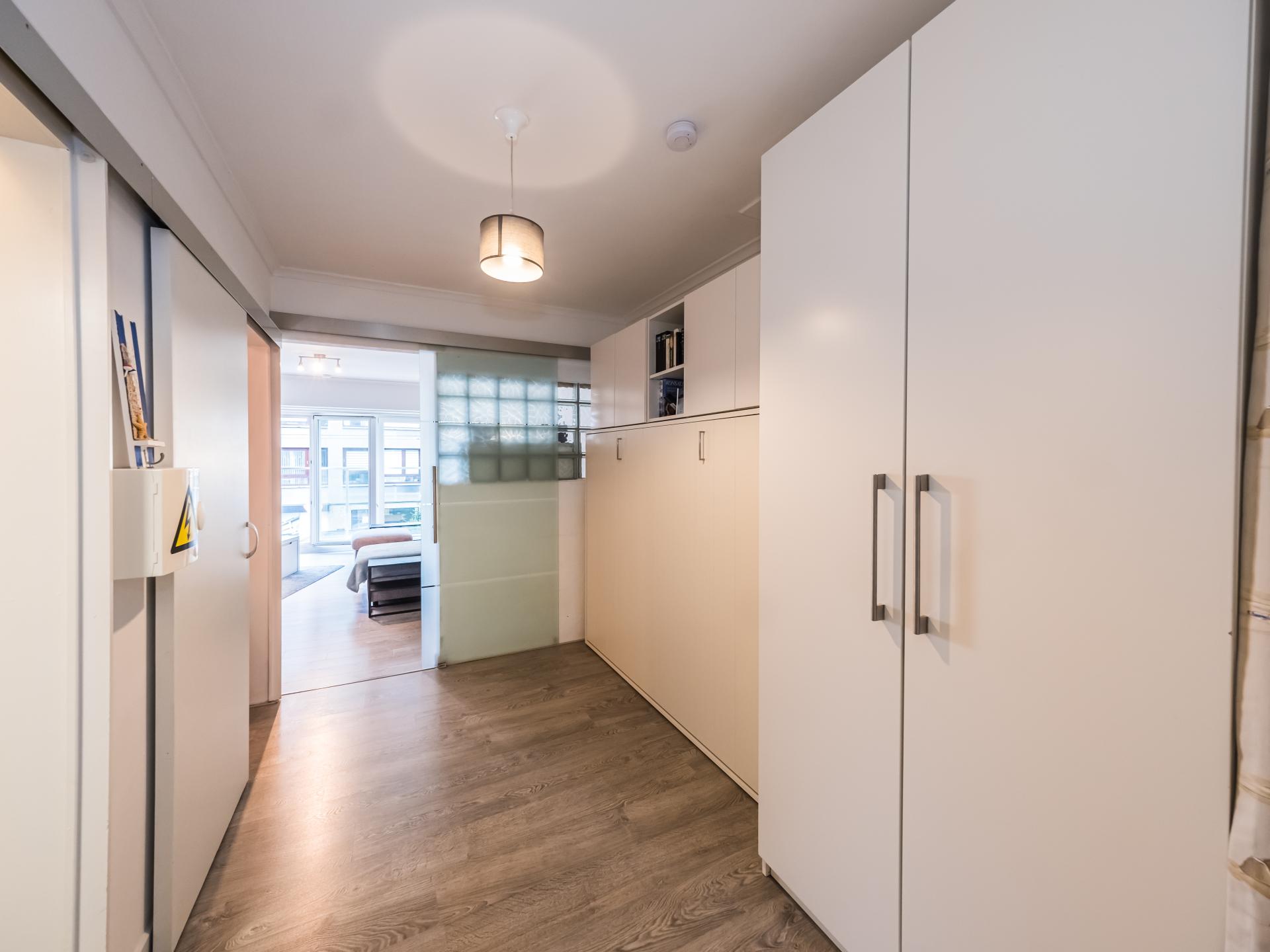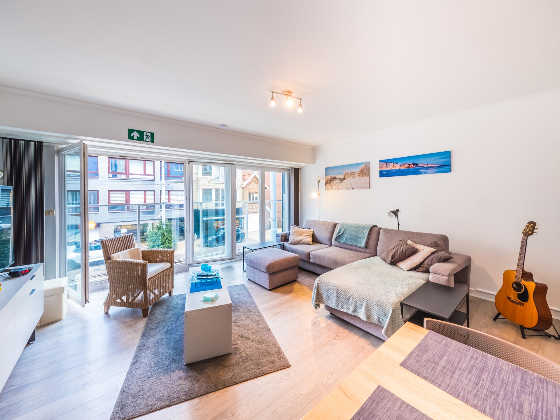 Studio op de 1e verdieping voor een comfortabel verblijf aan zee. Slaaphoek met tweepersoonsbed (afsluitbaar) en ruime woonkamer met zetelbed voor 2 personen. Kamerhoge ramen over de volledige breedte zorgen voor veel licht en prachtig zeezicht. Halfopen keuken en badkamer met toilet. Topligging aan de Zeedijk, vlak bij winkels en tram.