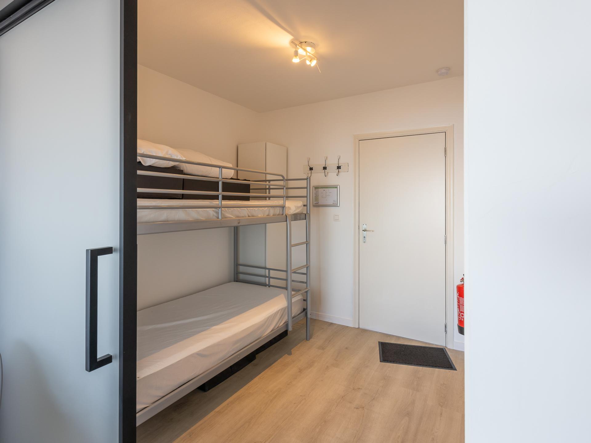 Gezellige studio op de 5e verdieping voor een ontspannen kustvakantie. Slaaphoek met stapelbed, ideaal voor kinderen of extra gasten. Woonkamer met kastbed voor 2 personen en slaapzetel voor 2 personen, met frontaal zeezicht. Volledig vernieuwde, ingerichte keuken met moderne voorzieningen. Vernieuwde badkamer met ligbad en toilet. Op wandelafstand van tramhalte en winkels.