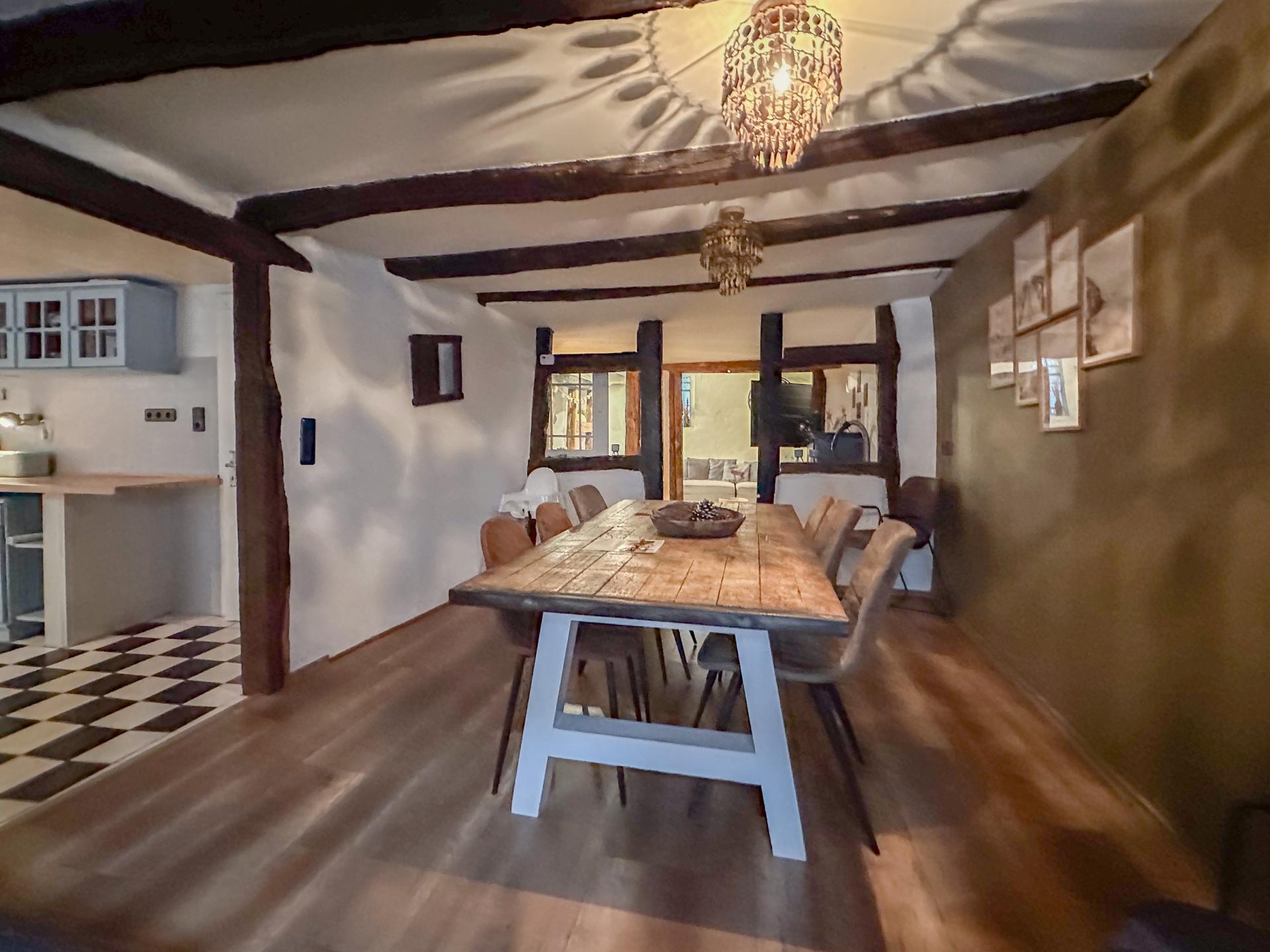 Dit zeer sfeervol en warm ingerichte vakantiehuis dateert uit 1615 en was vroeger het stadhuis. Het karaktervolle pand is bijzonder om te verblijven. Je geniet van moderne comfort met een goed uitgeruste keuken, ruime badkamers en comfortabele slaapkamers. Het huis heeft een afgesloten binnenplaats met loungehoek en BBQ waar je bij warm heerlijk beschut zit, en waar de druiven letterlijk boven je hoofd groeien.
