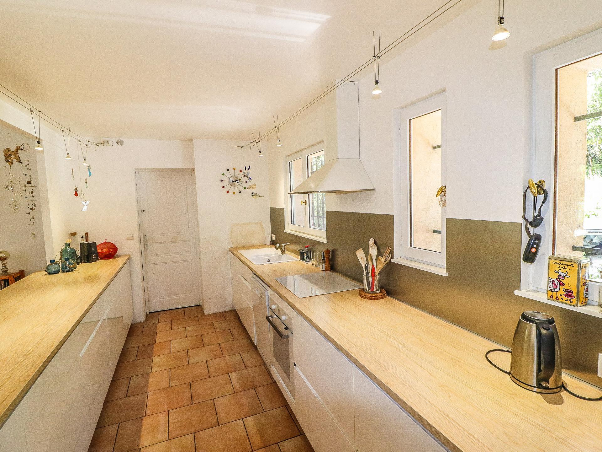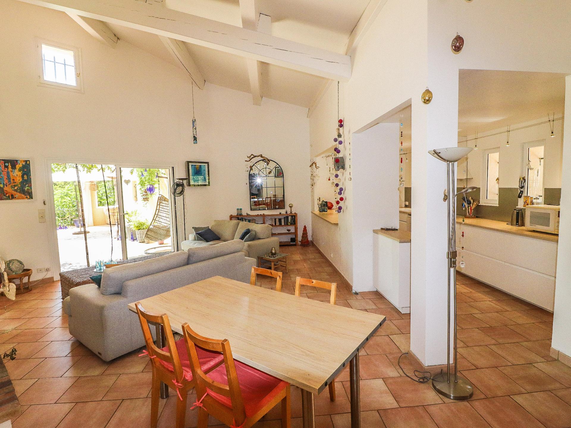 De villa bestaat uit een ruime woonkamer met open haard, omkeerbare airconditioning en een volledig uitgeruste open keuken. Deze ruimte opent naar de schaduwrijke terrassen, de zomerkeuken met pizzaoven, de tuin en de toegang tot het privézwembad met ligbedden. Het slaapgedeelte bestaat uit 2 slaapkamers met en-suite badkamers en wc's, en een prachtige grote suite met en-suite badkamer en wc. De tuin is prachtig, met zuidelijke soorten zoals olijfbomen en vijgenbomen.