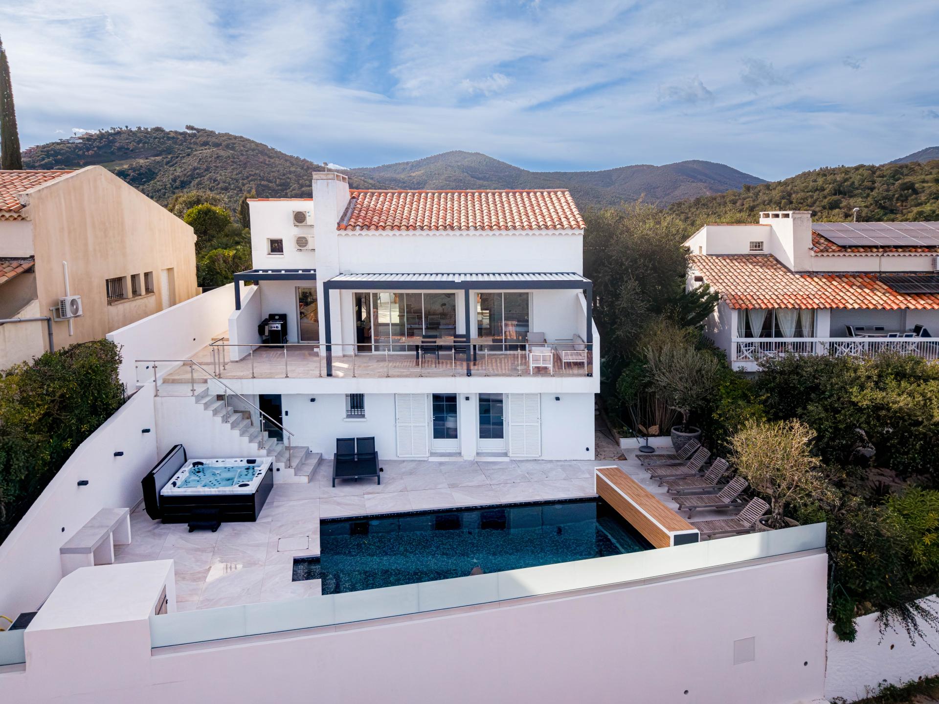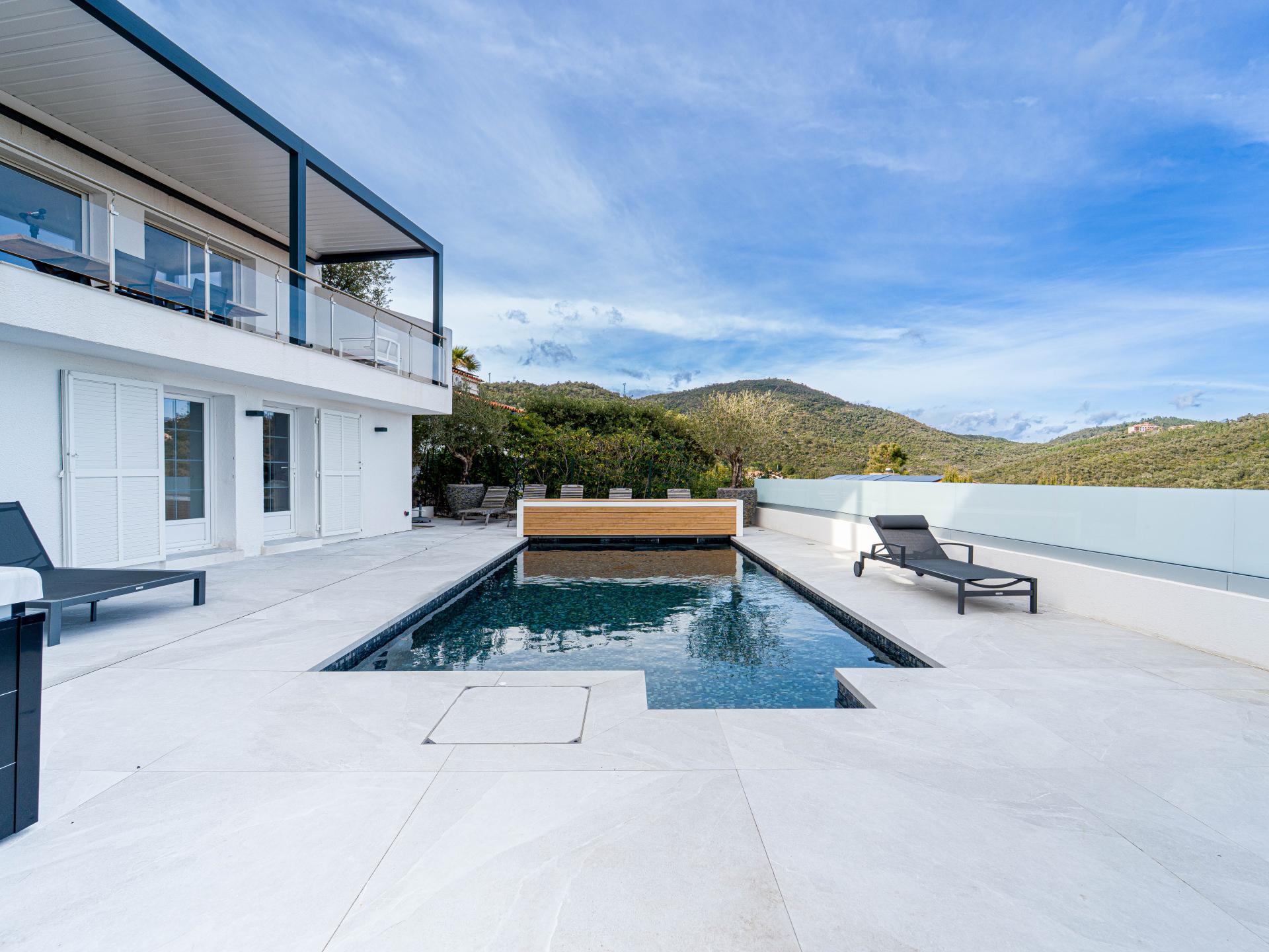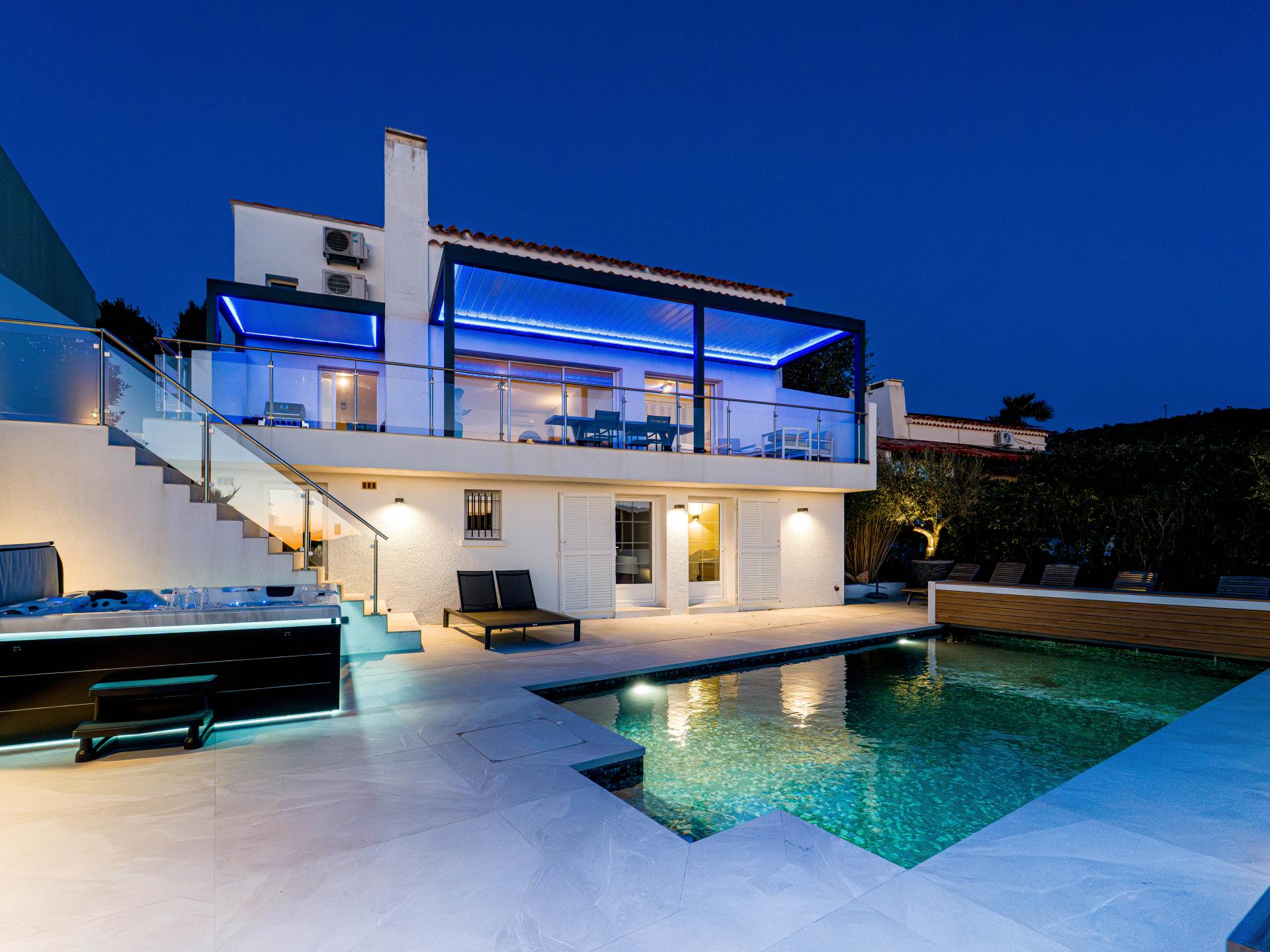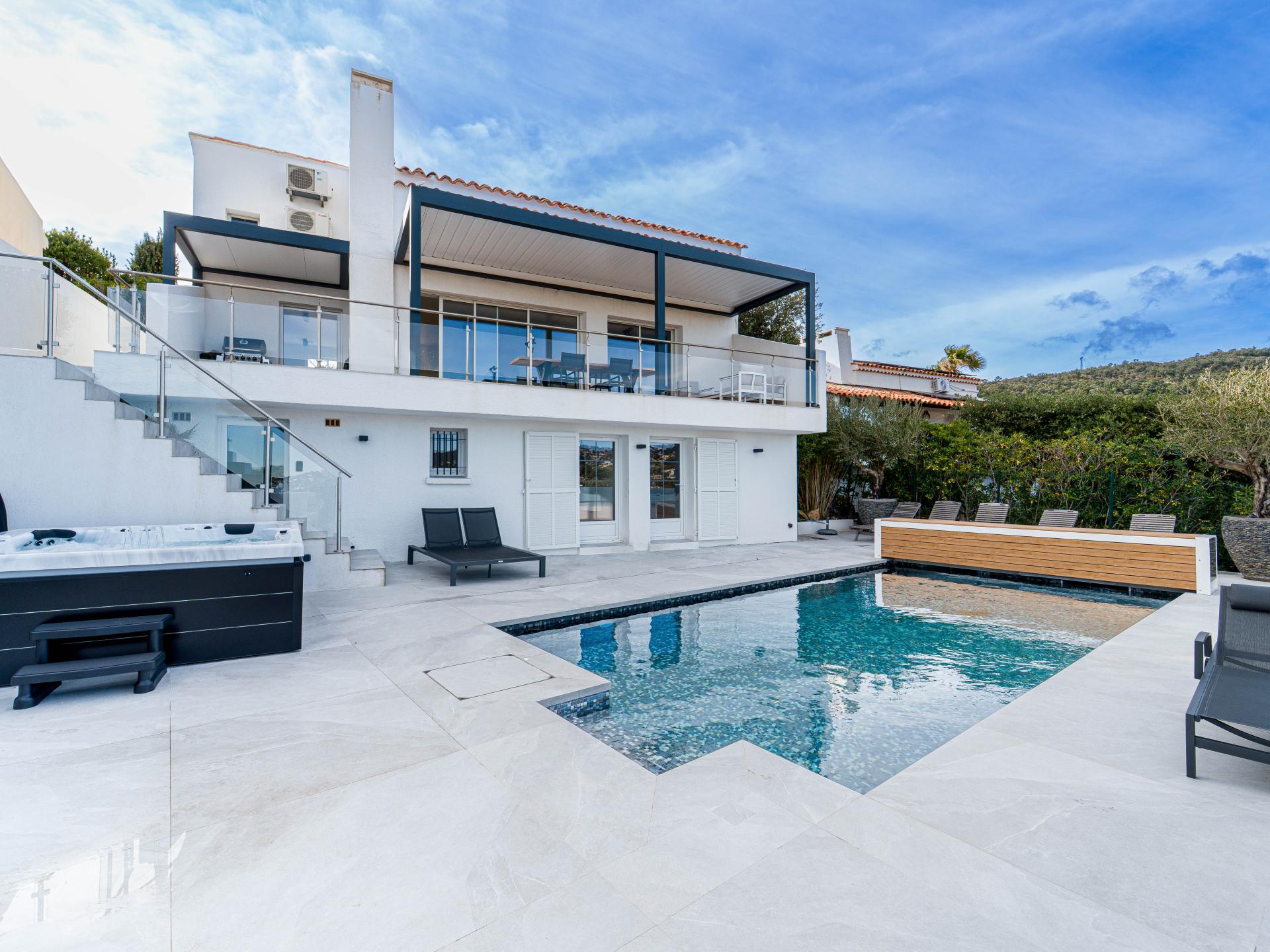 Deze luxe en stijlvol ingerichte villa met verwarmd privézwembad, bubbelbad en een prachtig uitzicht tot aan de Middellandse Zee ligt op slechts enkele minuten van het strand – dé ultieme vakantiebestemming aan de Côte d’Azur! De villa is verdeeld over twee verdiepingen en ideaal voor families of vrienden die samen reizen. Of je nu afkoelt in het zwembad, onder de sterren ontspant in de jacuzzi of relaxt op de royale zon- en schaduwterrassen – ontspanning is gegarandeerd.